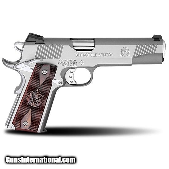 Description: Guns Listing ID: 53786 The 1911 Loaded takes the classic 1911 model and improves upon it with several new features. This semi-automatic pistol sports an Armory Kote forged steel frame with integral accessory rail stainless steel match grade 5 barrel forged steel slide GI style recoil system G-10 grips and beavertail grip safety. The 9mm features a 101 capacity and U-notch rear and fiber optic front sights. The 45 ACP caliber features a 71 capacity and three dot tritium sight. DETAILS Caliber .45ACP - Recoil System 2 Piece N.M. Full Length Guide Rod - Sights Low Profile Combat 3-Dot - Weight (with Empty Magazine) 40 ozs. - Height 5.5 - Slide Forged Stainless Steel Matte Rounds with Polished Flats - Barrel 5 Stainless Steel Match Grade - Length 8.6 - Grip Type Cross Cannon Double Diamond Cocobolo - Frame Forged Stainless Steel Matte Rounds with Polished Flats - Magazines 2- 7 Round Stainless Steel SOLD Manufacturer: SPRINGFIELD ARMORY Model: 1911 LOADED Caliber Info: 45 ACP Condition: new Barrels: 5 barrel Finish: STAINLESS |