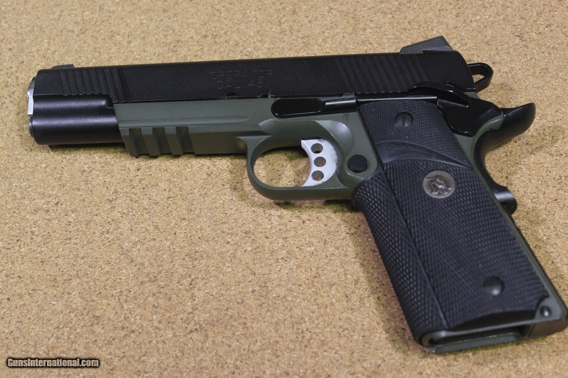 Description: Guns Listing ID: 511407 Like New in the box Springfield Armory 1911 Operator – 45 ACP. Comes complete with original hard case, two magazines, holster, magazine holder, paperwork and cleaning rod. SOLD Manufacturer: SPRINGFIELD ARMORY Model: 1911 OPERATOR Caliber Info: 45 ACP Condition: Used - Non-Certified Barrels: 4 BARREL Finish: OD GREEN |