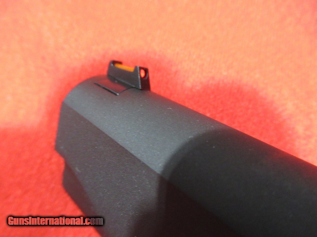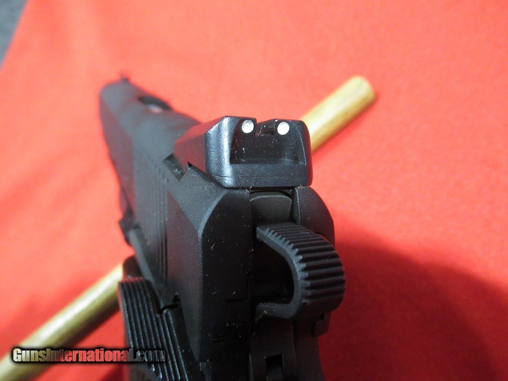 Description: Excellent condition appearing test fired only: checkered wood grips, low profile combat rear sight with a fiber optic front sight, checkered main spring housing skeleton hammer and trigger. Comes with a factory case, two magazines, paper work, and replacement fiber optic pipes. SOLD |