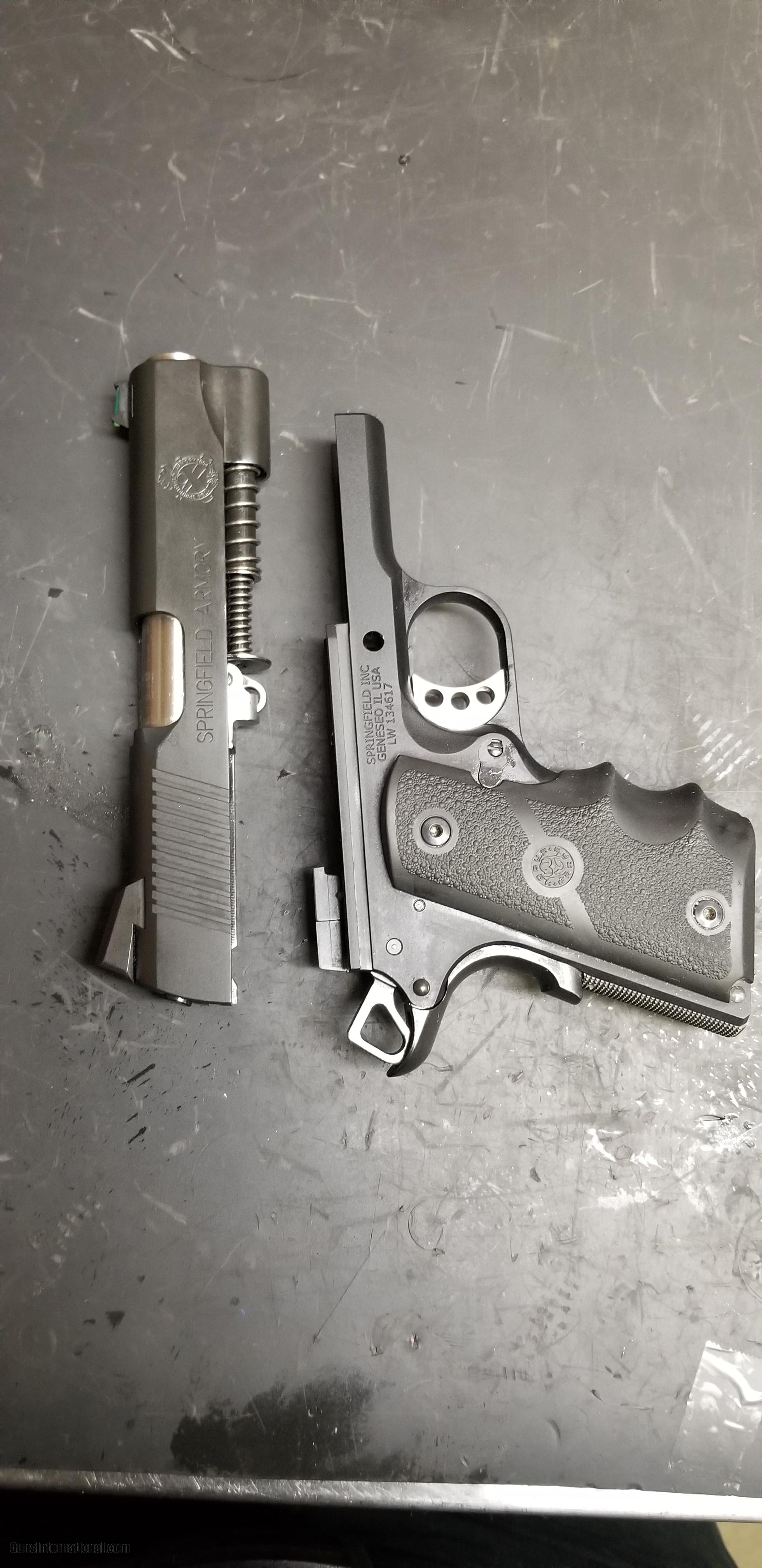 Description: Guns Listing ID: 476381 Loaded Range Officer package. The Range Officer Compact has the same quality forged national match frame and slide as the Springfield Trophy Match and TRP 1911s. It gets the same precision fit as these pistols, too. Add in the same match grade steel barrel, and you have a pistol that shoots well beyond its price tag. The Range Officer Compact is topped with a fiber optic front sight and a low profile combat rear sight, so you have maximum visibility. The beavertail grip safety, extended lightweight trigger and flat mainspring housing allow the pistol to sit in your hand comfortably for long periods of time at the range. The single-sided thumb safety keeps things simple and functional. It all adds up to a pistol that allows you to seriously compete in a variety of matches. Comes in Springfield Armory hard case. CALIBER: .45 ACP COLOR: Black BARREL: 4\" Forged Stainless Steel, Match Grade, Fully Supported Ramp, Bull, 1:16 SLIDE: Forged Carbon Steel, Parkerized FRAME: Forged Aluminum Alloy, Black Hardcoat Anodized SIGHTS: Fiber Optic Front, Low-Profile Combat White Dot Rear RECOIL SYSTEM: Flat Wire w/ Full Length Guide Rod GRIPS: Hogue Over mold MAGAZINES: (2) 6-Round WEIGHT: 28.5 oz LENGTH: 7.6\" HEIGHT: 5\ SOLD Manufacturer: SPRINGFIELD ARMORY Model: 1911 RANGE OFFICER COMPACT Caliber Info: 45 ACP Condition: Used - Non-Certified Barrels: 4 BARREL Finish: BLACK |
