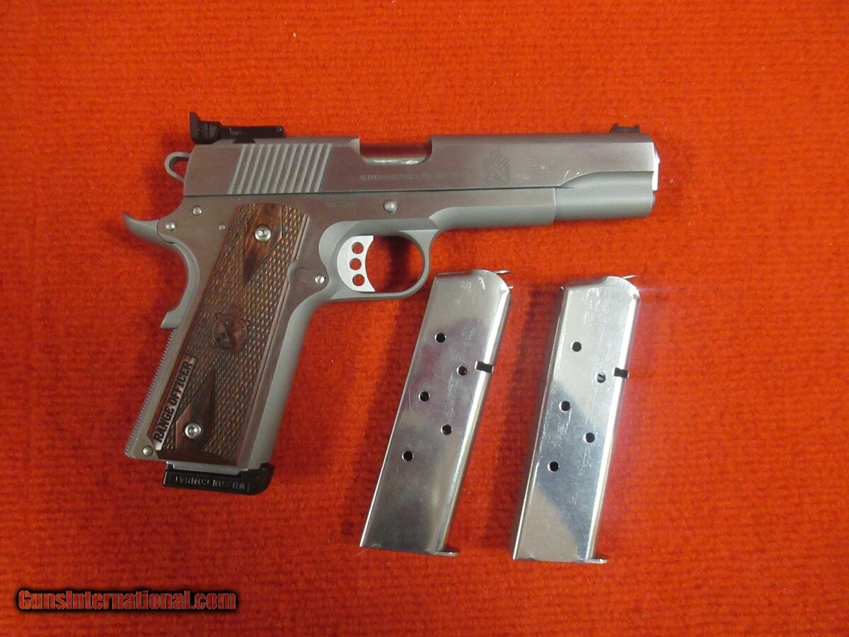 Description: Guns Listing ID: 794890 #223B Gun is in excellent condition. There are 2 small scuff marks on the right side of the barrel where it looks like it has been holstered, other than that gun looks like it is brand new. Gun comes in its original box with 2 extra mags and replacement sights. Comes with a canvas carrying case. Very nice 1911 pistol. &%) SOLD Manufacturer: SPRINGFIELD ARMORY Model: 1911 RANGE OFFICER TARGET Caliber Info: 45 ACP Condition: Used - Non-Certified Barrels: 5 BARREL Finish: STAINLESS |