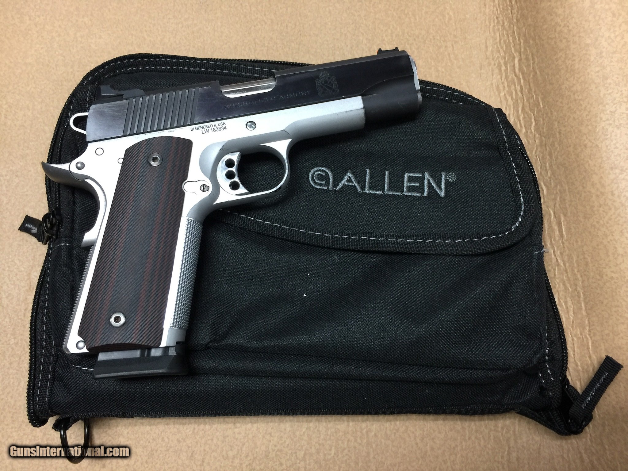 Description: Guns Listing ID: 1118063 NICE GUN. HAS HOLSTER WEAR. UPGRADED FRONT STRAP, 1-10RD MAG TUNGSTEN GUIDE ROD AND NEW GRIPS. DOES NOT HAVE BOX BUT COMES WITH ALLEN PISTOL BAG. SOLD Manufacturer: SPRINGFIELD ARMORY Model: 1911 RONIN Caliber Info: 9MM LUGER (9X19 PARA) Condition: Used - Non-Certified Barrels: 4.25 BARREL Finish: BLACK AND STAINLESS |