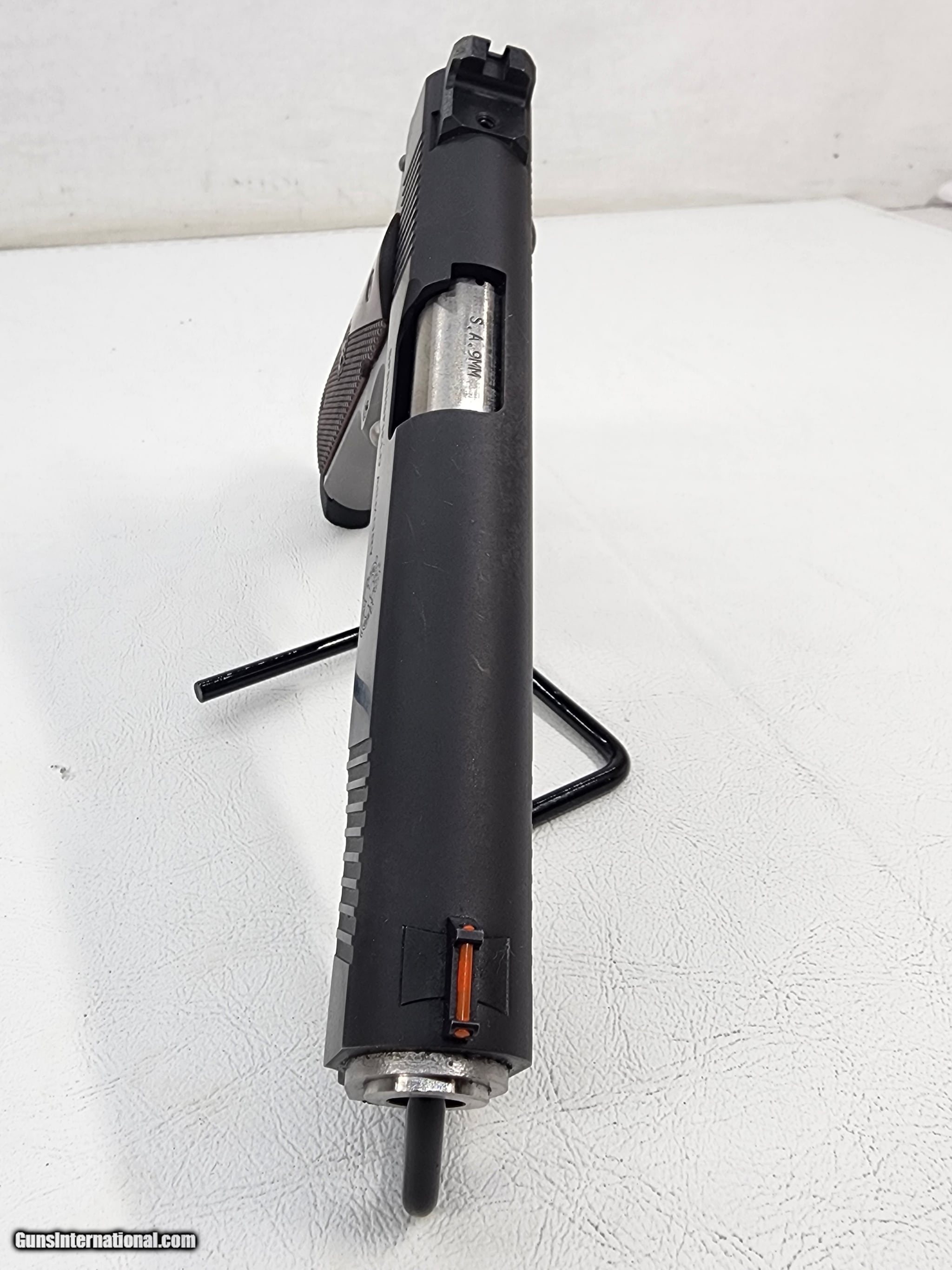 Description: Guns Listing ID: 1126480 The Springfield Armory® Ronin® in 9mm combines a legacy of service with the features modern shooters demand. Built on a foundation of strength, the Ronin sports forged steel slides and frames — carbon steel in the former and stainless steel in the latter — and a hammer-forged barrel. The pistol features a standard 5\" barrel, traditional recoil spring assembly and barrel bushing, and a tactical rack rear sight with a fiber optic front. The result is a traditional, yet cutting-edge 1911 ready for a lifetime of service. JPOOL SOLD Manufacturer: SPRINGFIELD ARMORY Model: 1911 RONIN Caliber Info: 9MM LUGER (9X19 PARA) Condition: Used - Non-Certified Barrels: 4 BARREL Finish: BLACK & STAINLESS |