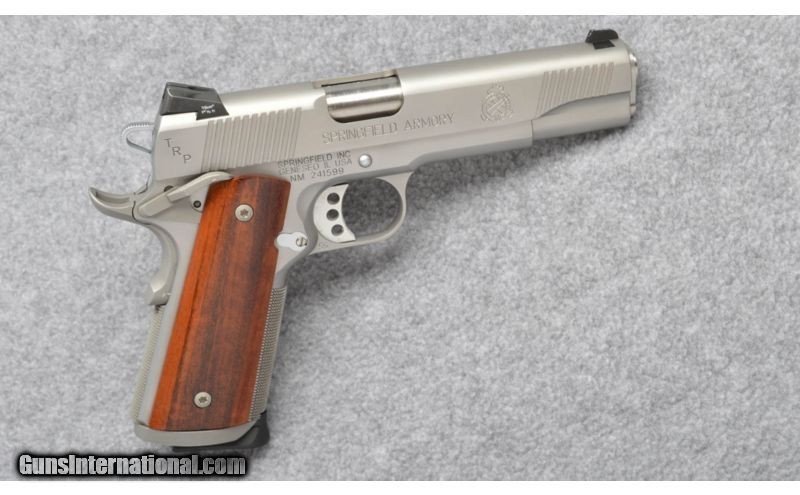 Description: Springfield Armory 1911A1 TRP Tactical chambered in 45 ACP. All stainless construction, Ambidexdrous safety, Long beavertail,Tactical mag well. Excellent overall condition with box. SOLD Caliber Info: 45 ACP Metal Condition: Satin stainless finish has a couple minimal handling marks Wood Condition: Excellent Bore Condition: Bright and Sharp Barrels: 5 inch with full length guide rod Stock: Smooth Wood Weight: 42 Ozs Sights: Tactical Wedge 3-Dot Night Sights Item Location: Buda, TX |