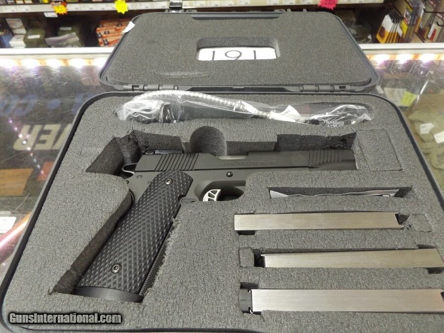 Description: Guns Listing ID: prod161436 Springfield Armory Custom 1911 6\" Long Slide 10mm 9+1 Rear Adjustable NIGHT SIGHTS and Fiber Optic front sights, 2 Mags. This is a Special gun from Springfield Armory‚‚s Custom shop SOLD Manufacturer: SPRINGFIELD ARMORY Model: CUSTOM 1911 TROPHY MATCH Caliber Info: .45 ACP Condition: new Barrels: 6 BARREL |