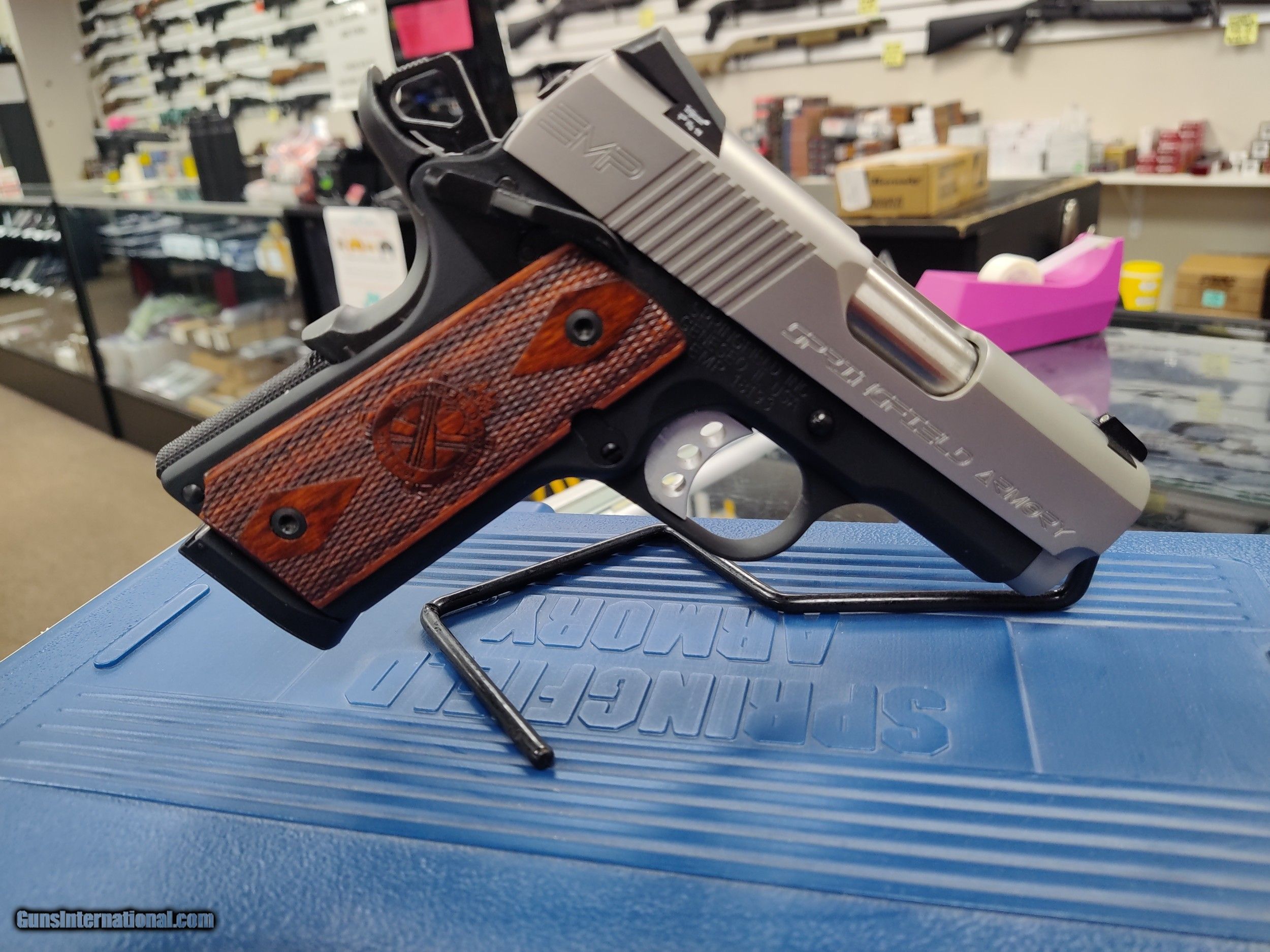 Description: Springfield 1911 EMP 9mm Pistol, 3″ Bull Barrel, 9 1 Capacity, Bi-Tone Finish – Springfield PI9209LP Innovation can take many forms. Sometimes it’s a brand new idea – like the XD. Other times innovation is the fine-tuning of a classic – like the EMP. How could the enduring design that is the 1911 be improved? Springfield Armory® answered that question in 2007 with the introduction of the Enhanced Micro Pistol™. The EMP changes what a compact 1911 can be. The action of the EMP is 1/8 inch shorter than that of the original 1911. This translates into several concrete advantages for the shooter. The shorter grip radius produces a shockingly comfortable shooting experience. You have to shoot the EMP to believe how controllable it is. The shorter dimensions also work to increase reliability – something that’s crucial in a concealed carry pistol. And of course, the overall dimensions are one of the smallest 1911s out there. The good news doesn’t stop with the innovative design. The EMP comes loaded with all the features you expect in a 1911 of this class – like low profile 3-Dot tritium combat sights and a match grade fully supported and ramped barrel. And with 9 1 rounds of 9mm or 8 1 rounds of .40 SW, the EMP packs an amazing amount of punch in one of the smallest 1911s ever. If you’re looking for a 1911 to carry with you every day, look no further than the Springfield Armory® EMP®. Sometimes innovation changes everything. Firearm is in excellent condition, comes with original box, three mags, holster and mag holder Trijicon sights still glow Please add $30 for shipping. Will ship to FFL of your choice. FL Residents must pay 6.5% sales tax. We accept Zelle, Cashiers Checks, and credit cards. If you have more questions or want more pictures please ask. Guns 4 Less 239-321-5025 SOLD Handgun Caliber: 9x19mm Parabellum (9mm Luger, 9x19mm NATO) |