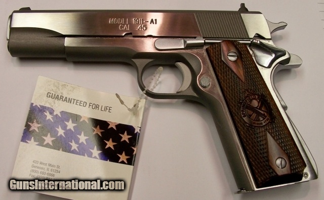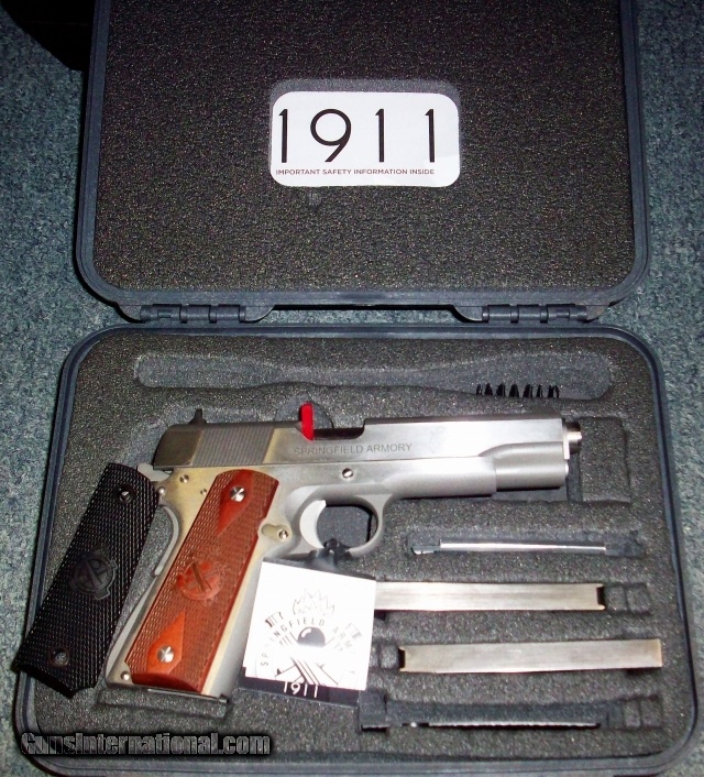 Description: Thid .45 ACP Cal. Springfield Armory STAINLESS STEEL Mil-Spec model is NEW IN THE BOX. Capacity 7+1. 5 " barrel. 3 Dot Fixed sights. Loaded chamber indicator. Titanium firing pin. Forged slide & frame. Beveled mag well. Lowered and flared ejection po SOLD |