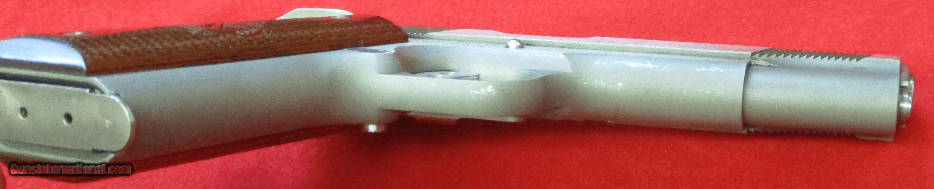 Description: Up for sale is this Springfield Armory 1911-A1 in .45 Auto with Stainless Frame and Slide.The rear sight is adjustable and both rear and front sights are black.The grips are wood checkered with Springfield Armory logos on each panel.There are some scratches on the slide and frame. There are no marks or scratches on the grips. The bore is clean and shiny.Lock up and function appear fine with a tight action. I rate the condition at Very Good or 90%. This pistol comes with 4 magazines (2 Stainless,2 Blue) along with a Sticky Pocket Holster.Shipping to the Continental US is $30.00 with a 3-Day inspection from the time the package is delivered to your Dealers address. I am a storefront FFL in business over 17 years with over 1400 A+ internet sale ratings. Email your questions or feel free to give me a call at the telephone numbers listed. Thank you, Glenn SOLD Handgun Caliber: .45 ACP (.45 Auto) Manufacturer: Springfield Armory Model: 1911-A1 Serial Number: NM377614 Barrel Length: 5 Bore: Excellent Condition: Very Good Sights: Adj. Rear Extras: 4 Magazines, Holster |