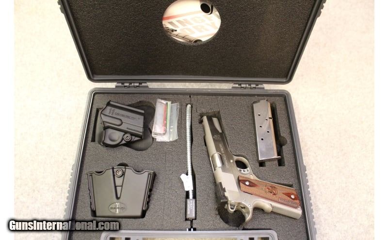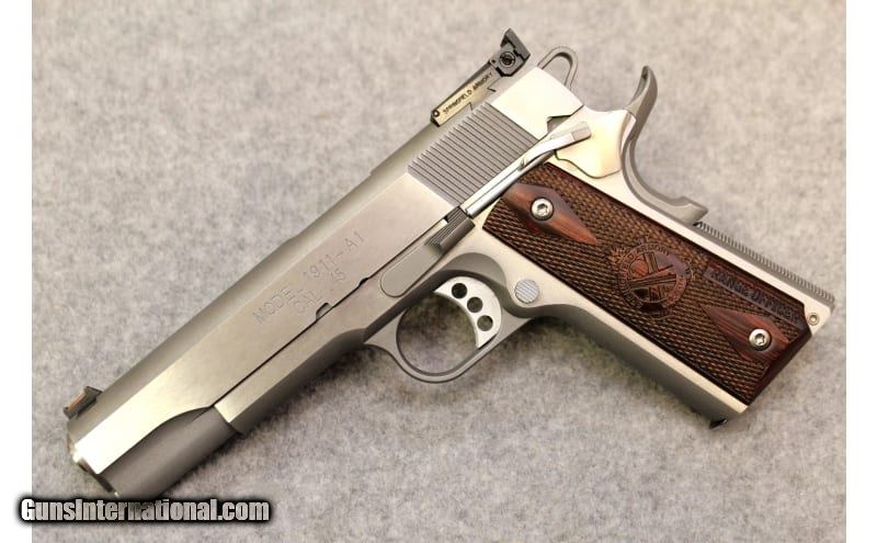 Description: This Range Officer 1911-A1 chambered in .45 Auto features, stainless finish, extended beavertail, extended thumb safety, adjustable target rear sight, and fiber optic front sight. .45 Auto SOLD Metal Condition: Excellent Wood Condition: Excellent Bore Condition: Bright Barrels: 5 inch Weight: 2.4 lbs. Item Location: Hoffman Estates, IL |