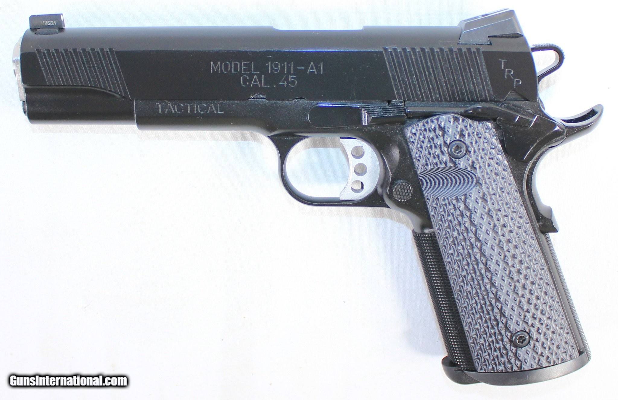Description: Guns Listing ID: 604960 MAKE - SPRINGFIELD ARMORY MODEL - 1911 TRP TACTICAL FINISH - BLACK (A-KOTE) BARREL - 5\" CALIBER - 45 ACP CAPACITY - 8 CONDITION - EXCELLENT COMES WITH BOX, 3-MAGS, HOLSTERS, NIGHT SIGHTS Manufacturer: SPRINGFIELD ARMORY Model: SPRINGFIELD ARMORY 1911 TRP TACTICAL 45 ACP 5" W/ BOX 3-MAGS & NIGHT SIGHTS Caliber Info: .45 ACP Condition: Used - Non-Certified Barrels: 5" BARREL Action: SEMI AUTOMATIC Finish: black Price: $1,199.99 Contact Seller |