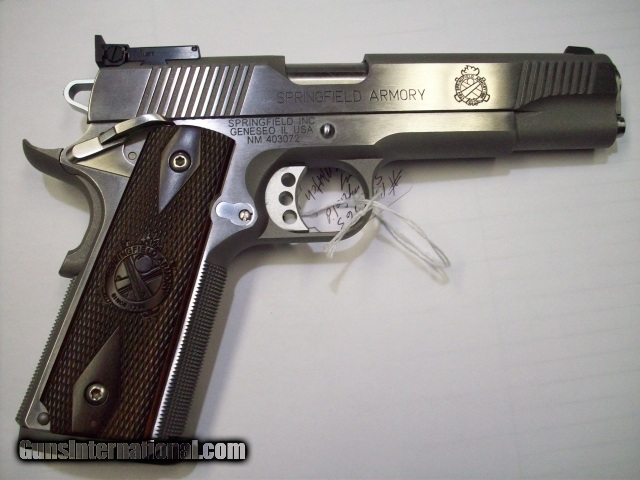 Description: This .45 ACP Cal. STAINLESS STEEL Springfield Armory TROPHY MATCH 1911 style pistol is preowned but is in AS NEW Condition. Comes in hard case with two mags, holster & mag holder. $1500.00. rmgrigolettoyahoo 732 280 8750. SOLD |