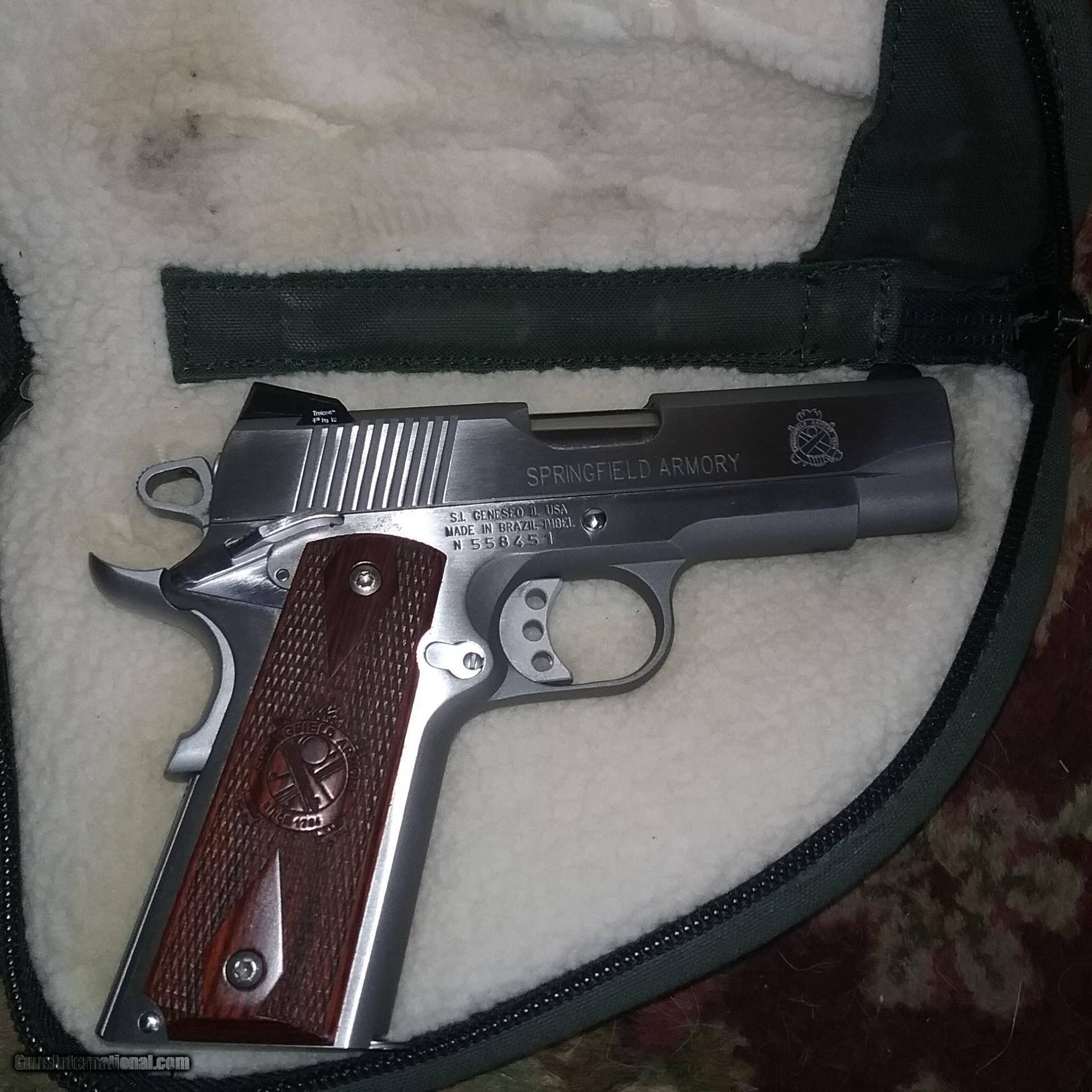 Description: SPRINGFIELD CHAMPION 1911 PISTOL, 4" BULL BARREL, .45 AUTO, STAINLESS FINISH, COCOBOLA WOOD GRIPS, TRITIUM NIGHT 3-DOT SIGHTS, 2-7 ROUND MAGAZINES. BEAUTIFUL GUN. BUYER PAYS SHIPPING AND TRANSFER FEES SOLD Handgun Caliber: .45 ACP (.45 Auto) Manufacturer: SPRINGFIELD Model: 1911 |