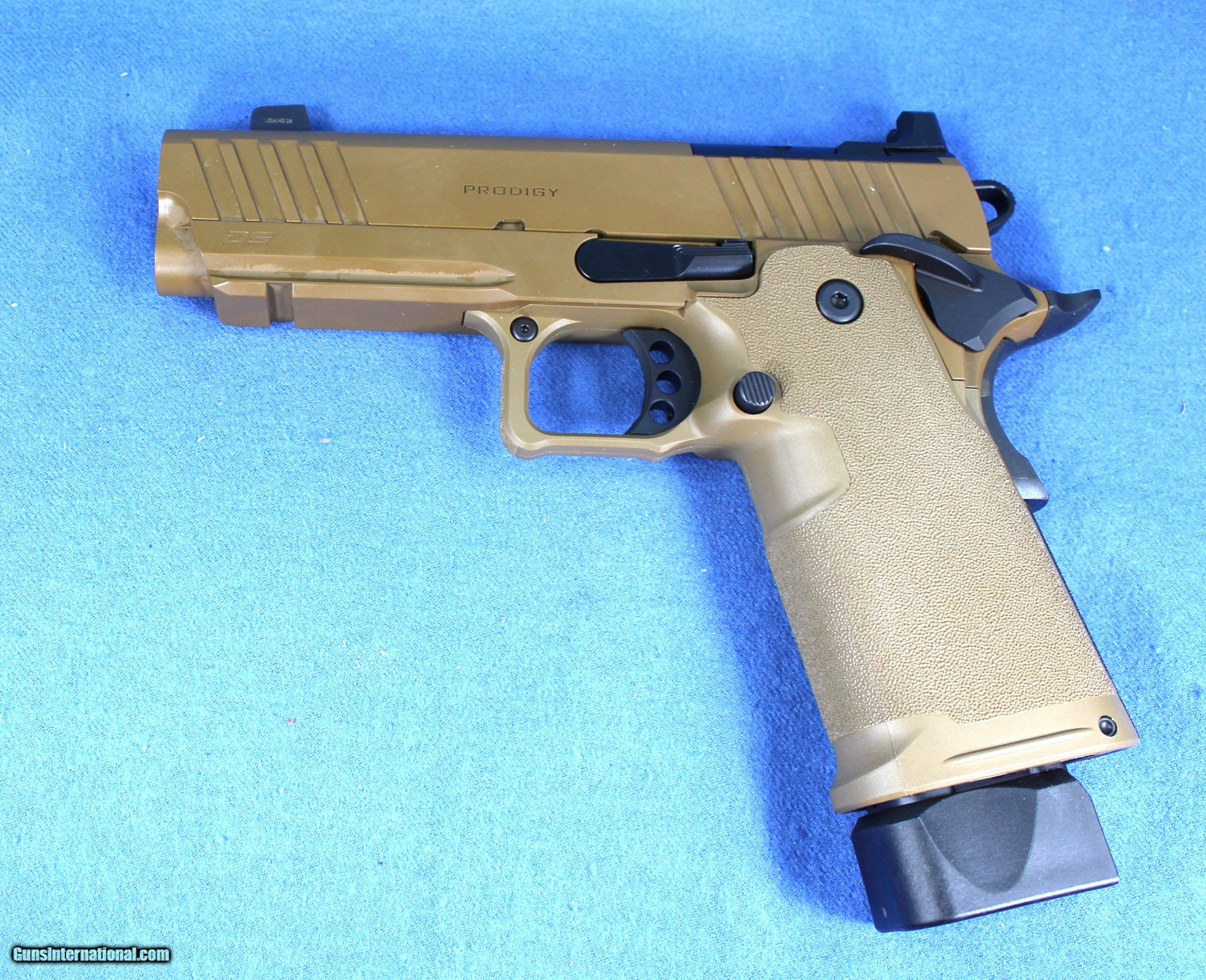 Description: SPRINGFIELD DS PRODIGY COMP AOS 9MM CB PH9117AOSCB-COMP MODEL: 1911 DS Prodigy AOS TYPE: Semi-Auto Pistol ACTION: Single Action CALIBER/GAUGE: 9mm FINISH: Coyote Brown Cerakote FINISH TYPE: Applied Finish FRAME: Polymer Frame STOCK/GRIPS: Coyote Brown Grip Frame BARREL: 4.25" OVERALL LENGTH: 7.8" WEIGHT: 32.5 oz. RATE-OF-TWIST: 1-in-16" CAPACITY: 20 + 1 # OF MAGAZINES: 2 MAG DESCRIPTION: One 17 rd. and One 20 rd. SIGHTS: FS: Fiber Optic RS: Black SIGHT TYPE: Fixed Sights OPTICS READY CUT SAFETY FEATURES: Ambi Thumb Safety Integral Compensator Optics Ready Slide Polymer Grip Module Condition: New Excellent Handgun Caliber: 9x19mm Parabellum (9mm Luger, 9x19mm NATO) Manufacturer: SPRINGFIELD Model: 1911 DS Prodigy AOS Barrel Length: 4.25 Condition: New - Excellent Metal Condition: Excellent Weight: 32.5oz. Price: $1,589.98 Buy Now Contact Seller |