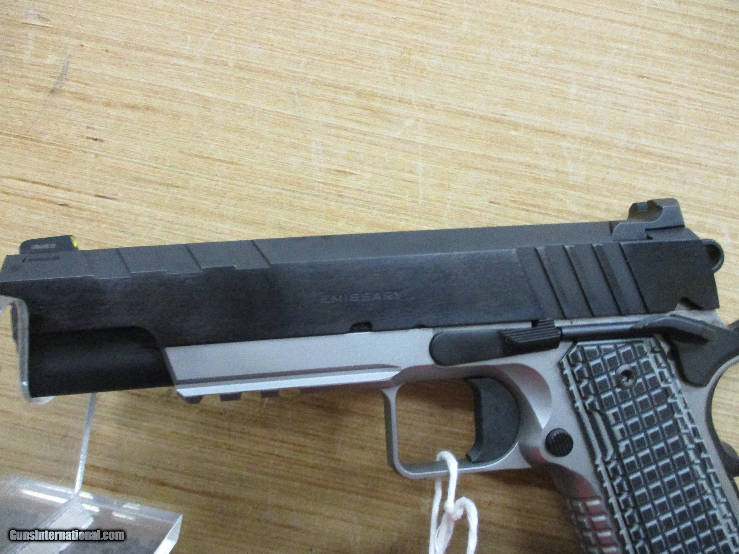 Description: USED USED VERY GOOD CONDITION Springfield 1911 Emissary Pistol PX9219L, 9mm, 5", Black G10 Grips, Blued Carbon Steel Finish, 9 Rds