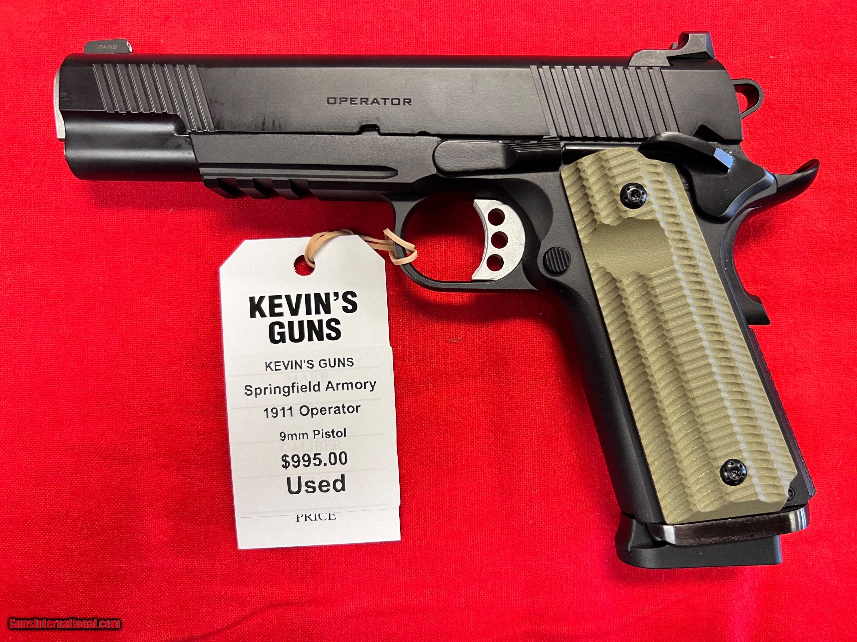 Description: Excellent SA Operator 1911 in 9mm in soft case with two mags, pic rail mag funnel SOLD |
