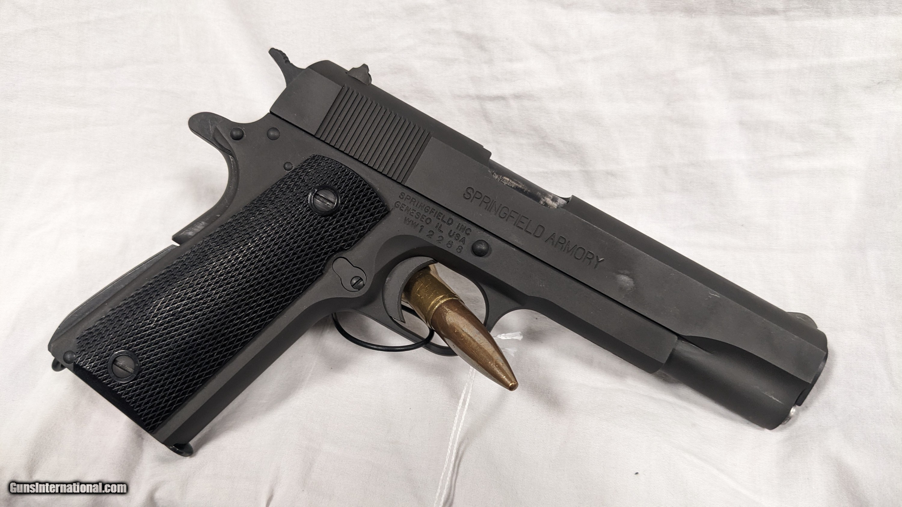 Description: This is a used item. While we do not test fire our used firearms, we perform an inspection and function check to determine the firearm is fully functional to the best of our ability. Please call with any questions. If you are interested in purchasing this item, please give us a call. Please have the "Seller #" and/or "Guns International #" ready along with the contact information for the FFL you'd like the item shipped to. For Sale from First State Firearms of Delaware AKA "The Gun Shop" in New Castle, DE. Shipping is $25.00. Includes $100.00 in shipping insurance. Additional insurance available at buyer's expense and request. SOLD Handgun Caliber: .45 ACP (.45 Auto) Manufacturer: SPRINGFIELD ARMORY Model: MODEL 1911-A1 Serial Number: WW12288 Condition: USED, 85% Action: SEMI-AUTO Extras: NONE / GUN & MAGAZINE ONLY Case: BOX INCLUDED |