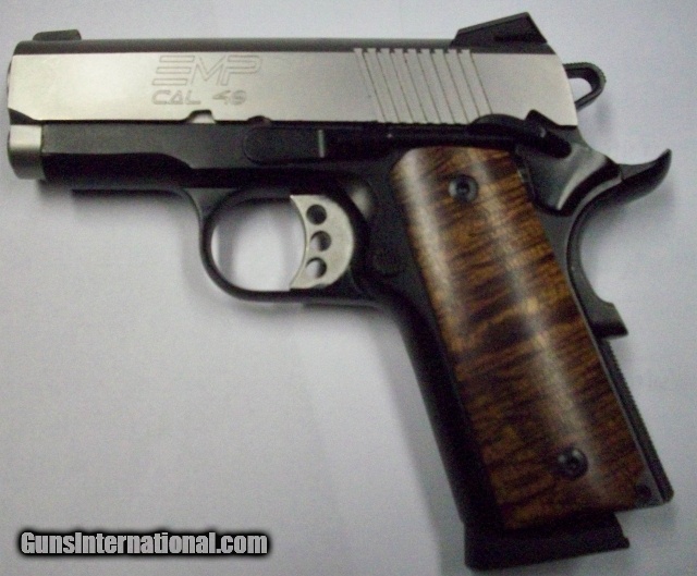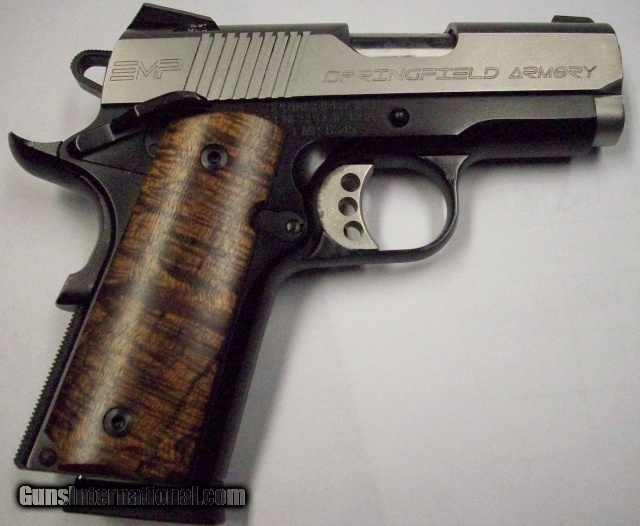 Description: This .40 S&W Cal. pistol is a 1911 style Springfield Armory EMP ENHANCED MICRO PISTOL. 3" Stainless steel bull barrel. Polished stainless slide with blue frame. Tritium 3-dot sights. Cocobolo grips. Comes with THREE mags and hard case. Conditio SOLD |