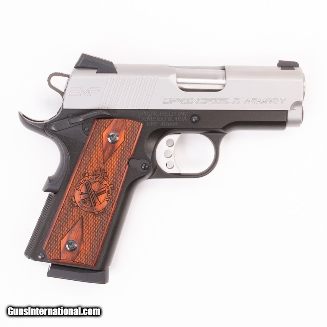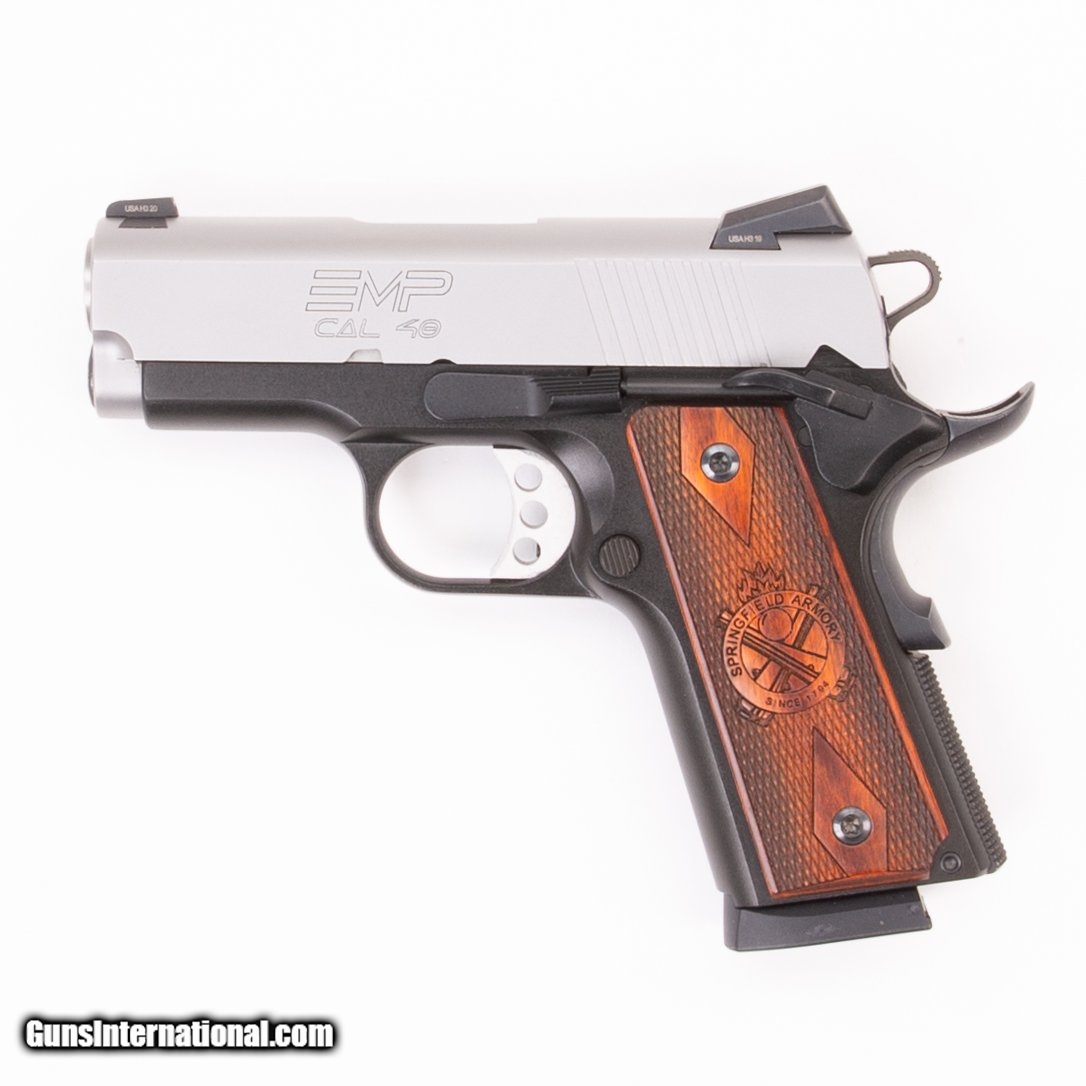Description: Guns Listing ID: 462956 This EMP Model features three 7-round magazines, the original case, owner‚‚s manual, a safety, 2 OWB leather holsters and night sights. Get the best bang for your buck when you get a Certified Used Firearm . When you see the Certified Used stamp on any of our firearms, you can be confident that you’re getting exactly what you want – a gun only in very good to excellent condition and held to the highest quality standard. All Certified Used Guns come with a ‘no questions asked’ return policy . PLUS, ALL CERTIFIED USED GUNS SHIP FREE SOLD Manufacturer: SPRINGFIELD ARMORY Model: EMP Caliber Info: .40 S&W Condition: Used - Certified Barrels: 3.20 Action: SEMI AUTOMATIC Finish: BLACK & STAINLESS Weight: 2 |