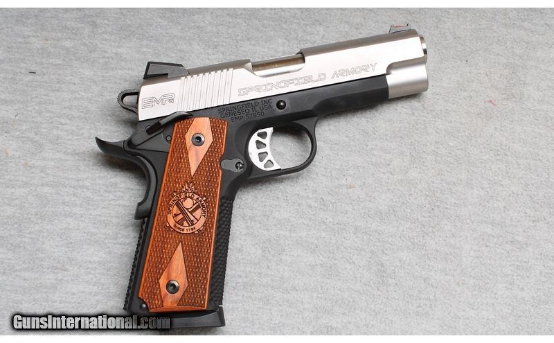 Description: Appears as new, comes with 3 mags and original box. Reengineered around the 9mm cartridge, the Springfield Armory Enhanced Micro Pistol (EMP) translates the benefits of the full-size 1911 into a smaller platform perfectly suited for today's most popular defense caliber. Easy carrying and smooth shooting, the EMP is built with a forged frame and slide to last a lifetime. To capitalize on the smaller caliber refinements, the EMP features a shortened frame and action compared to its full-size counterpart. The reduced grip radius produces a remarkably comfortable shooting experience and makes the pistol a concealable and confident side arm. 9mm Luger SOLD Chambers: Semi auto Metal Condition: As new Bore Condition: Bright Barrels: 4 Triggers: Single action Butt Pad: Wood grips Sights: "2 Dot rear, red fiber optic front sights Item Location: La Vista, NE |