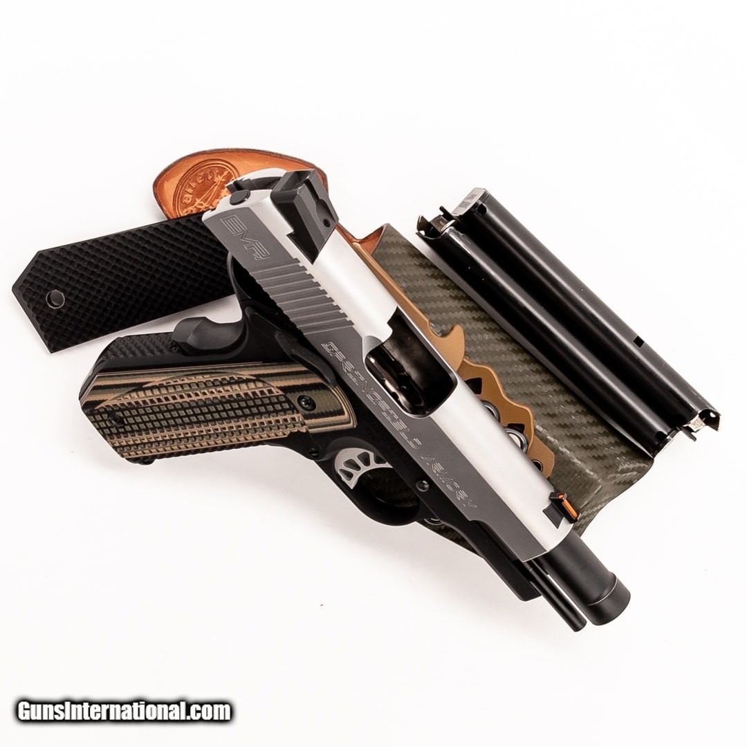 Description: Guns Listing ID: 382691 The Springfield Armory EMP4 is a compact 1911 pattern handgun chambered in 9mm. It's excellent for daily carry, home-defense, and target shooting. 3-9 round magazines, the original grips, a right hand IWB holster, the original case, and a manual are included. SOLD Manufacturer: SPRINGFIELD ARMORY Model: EMP4 Caliber Info: 9MM LUGER Condition: Used - Certified Barrels: 3.75 BARREL Finish: TWO-TONE STAINLESS |