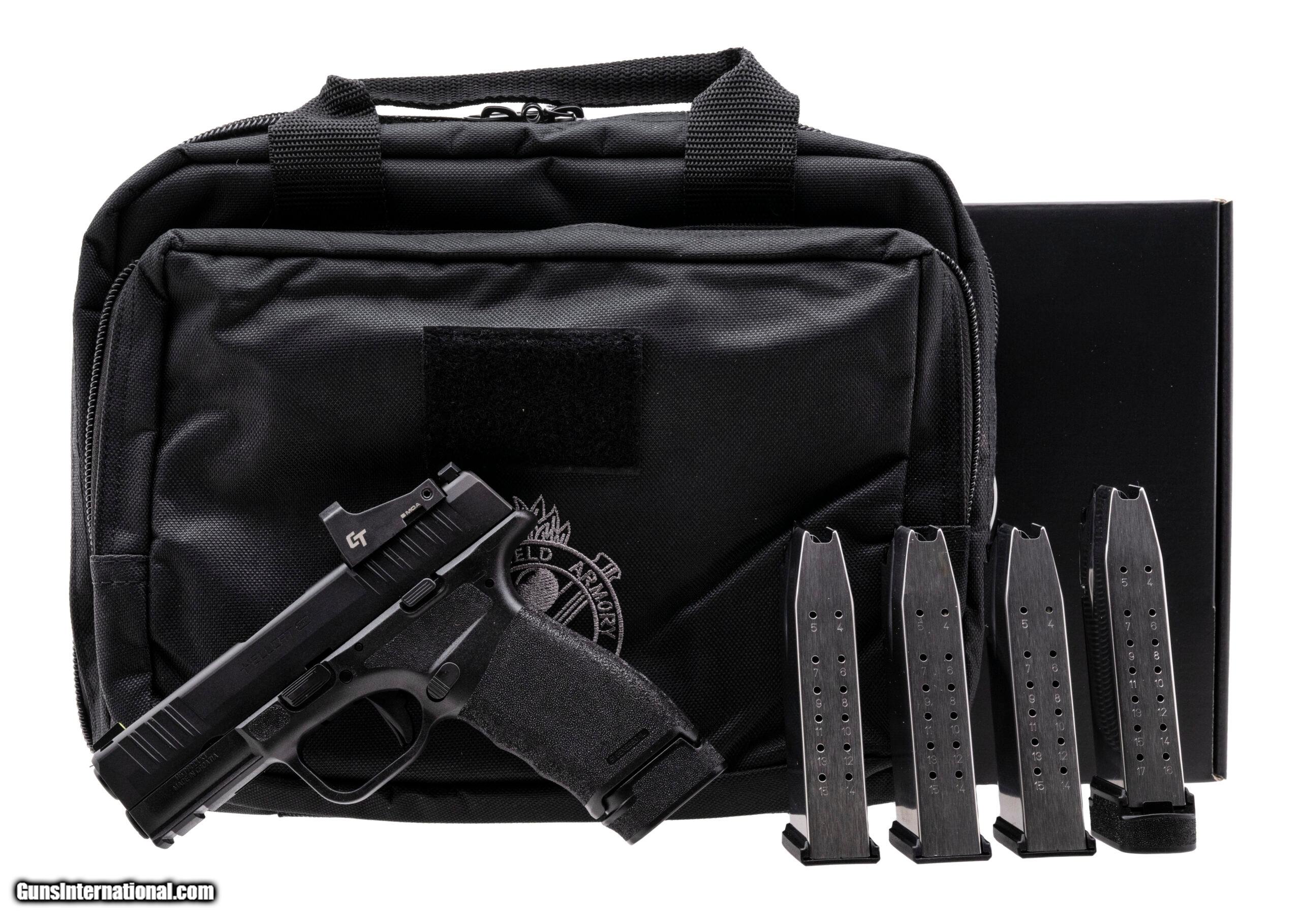 Description: "Striker Fired Semi-Automatic with a 3.7"" Barrel. Compact, Melonite Finish, Polymer Frame, Crimson Trace Red Dot Optic, and Tritium Front Sight. Includes 3-15rd & 2-17rd Magazines, and Two SA Carry Bags. NEW. UPC: 706397990268 (STOCK PHOTO) SOLD |