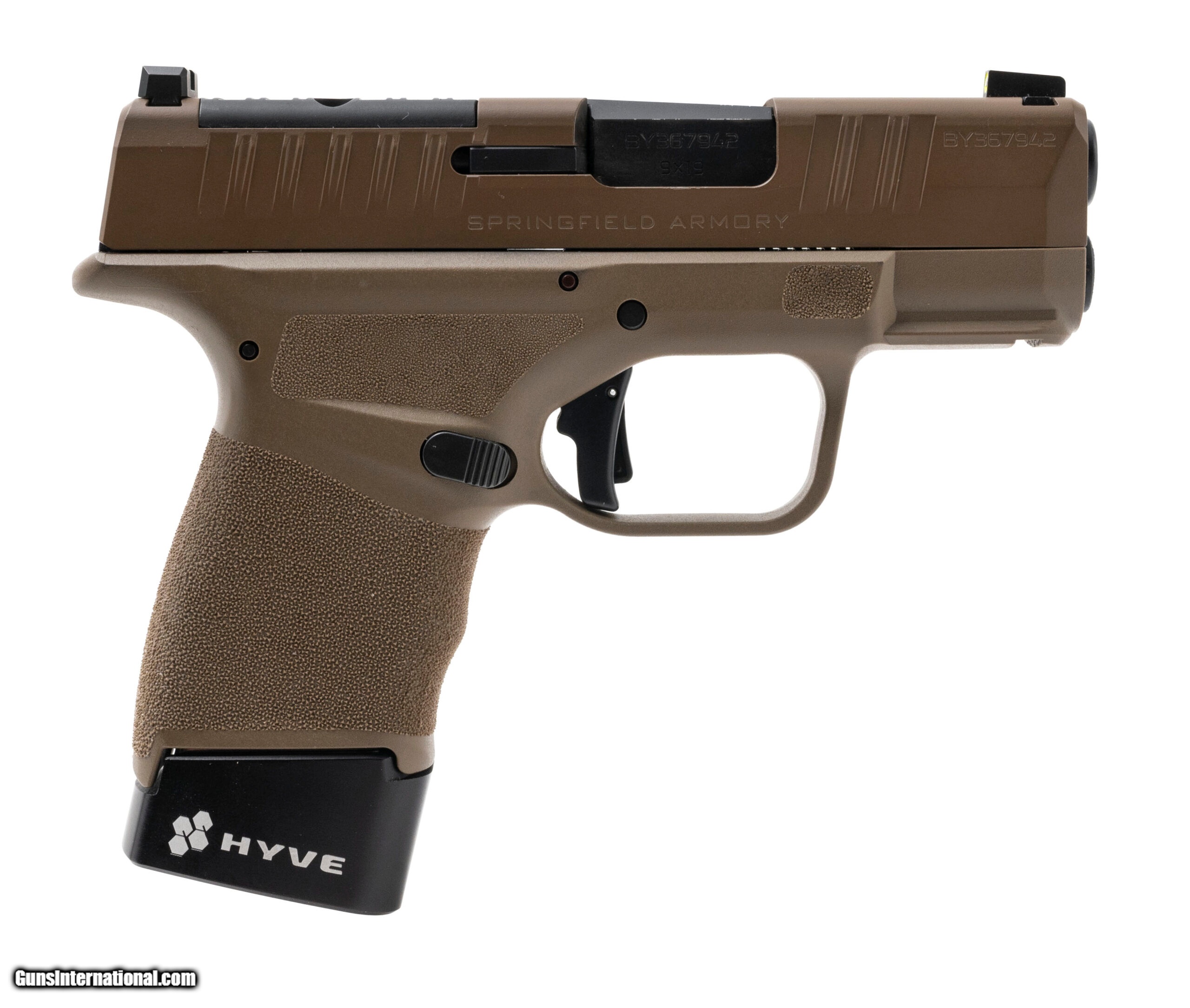 Description: "SN: BY367942. Modern production. Polymer frame striker-fired compact pistol made by Springfield. 3"" barrel chambered for 9x19mm. Great condition with traces of holster wear on the FDE slide finish. Features reversible magazine release and tritium front sight. 11-round base capacity; magazines come with Hyve +2 floorplate extensions. Optics-ready slide. SOLD |