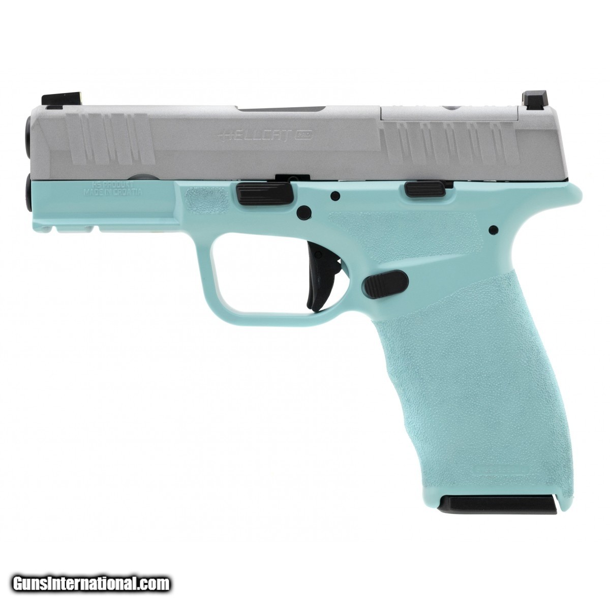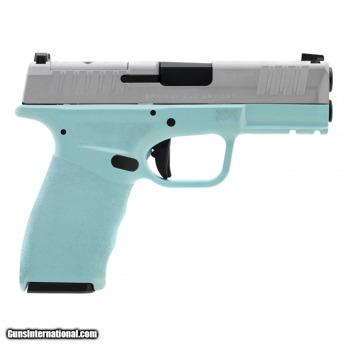 Description: " Semi-automatic polymer framed two tone 3.7"" carry pistol with a tiffany blue frame and optic ready silver slide. NEW. UPC: 688099403225. (STOCK PHOTO) SOLD |