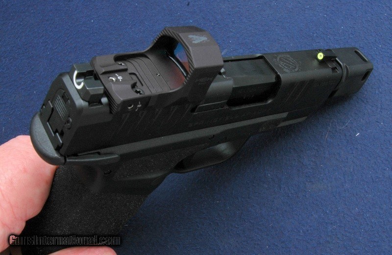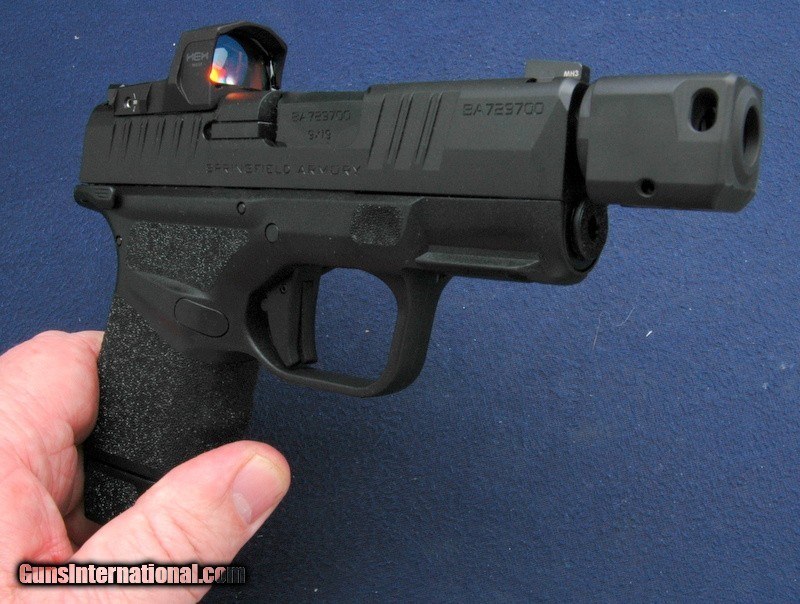 Description: New in the box, this Hellcat is fully rigged out with the Springfield Armory muzzle break and a Hex Wasp red dot sight. Also has a big dot tritium front sight with the yellow surround and the semi circle deep U notch rear sight. Comes also with a soft case, one 13 round magazine and one 11 round magazine. $50 shipping to the lower 48, 3% surcharge for using a CC. If you choose to pay with a personal check, we will hold the item for up to 10 days to make sure that it clears. Please expedite such pymts as we will hold an item on your word for 5 days. SOLD Handgun Caliber: 9x19mm Parabellum (9mm Luger, 9x19mm NATO) |