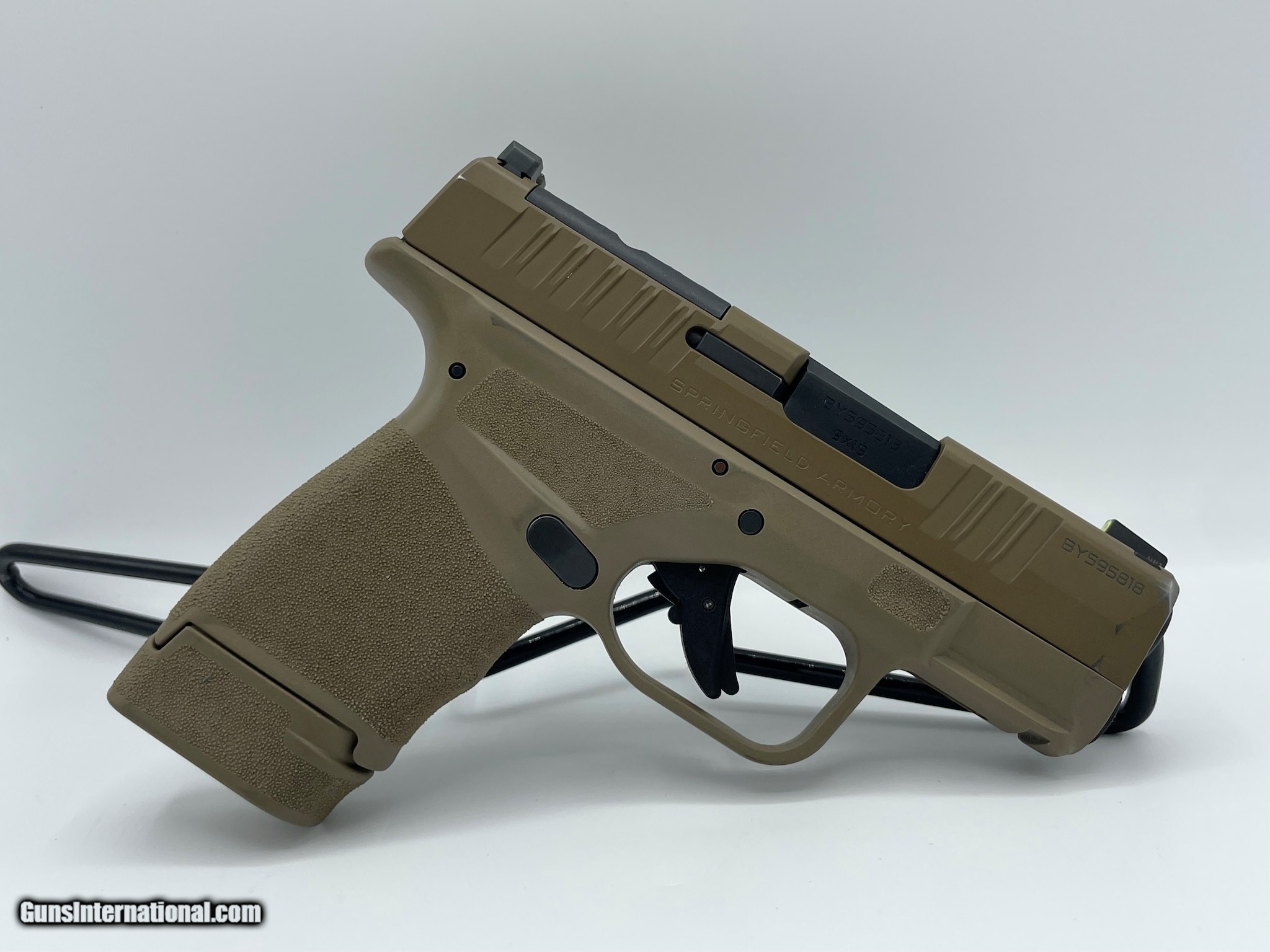 Description: Guns Listing ID: 971937 This is a preowned SPRINGFIELD ARMORY HELLCAT 9mm pistol in VERY GOOD condition. Comes as pictured with minor cosmetic wear and 1 magazine. Features and Benefits 9mm semiautomatic centerfire pistol Adaptive Grip Texture Up to 13+1 capacity Precisely milled for optics Frame molded from Desert FDE polymer with a Cerakote finish coating on the slide Tritium/luminescent front sight and Tactical Rack U-Notch rear sight Trigger safety and firing pin locking block drop safety 3-inch hammer-forged steel barrel with Melonite finish Specifications Product Type: Pistol Manual Safety: No Activity: Recreational Shooting Magazine capacity: 13 Barrel length (in.): 3 I#0929070 NMM-J1 SOLD Manufacturer: SPRINGFIELD ARMORY Model: HELLCAT Caliber Info: 9MM LUGER (9X19 PARA) Condition: Used - Non-Certified Barrels: 3 BARREL Finish: DESERT FDE POLYMER |