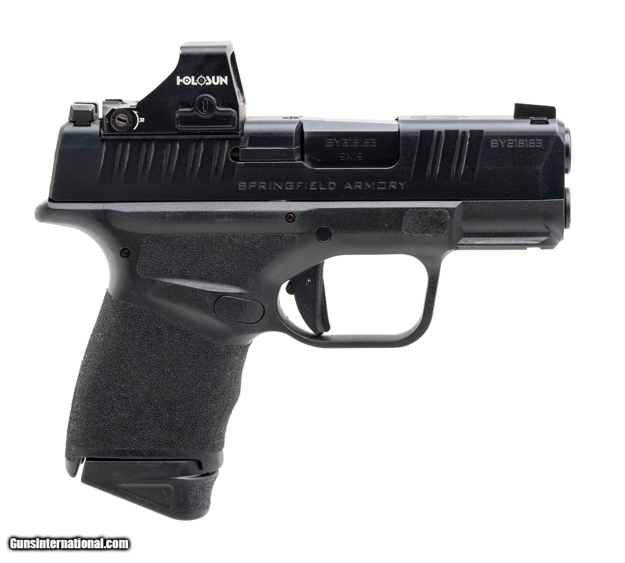 Description: Guns Listing ID: 540225 SN: BY218183. Modern production, 9mm with a 3\" barrel. Bore is excellent. Micro-compact striker fired pistol with a Holosun HE407K green dot sight, tritium front sight, accessory rail, matte black finish, and black polymer frame w/adaptive grip texture. Shows minor holster wear. Includes 2 additional 13rd magazines, and original soft carry case. Overall condition is very good. (PR73955) SOLD Manufacturer: SPRINGFIELD ARMORY Model: HELLCAT Caliber Info: 9MM LUGER (9x19 PARA) Condition: Used - Non-Certified Barrels: 3 BARREL Action: SEMI AUTOMATIC Finish: black |