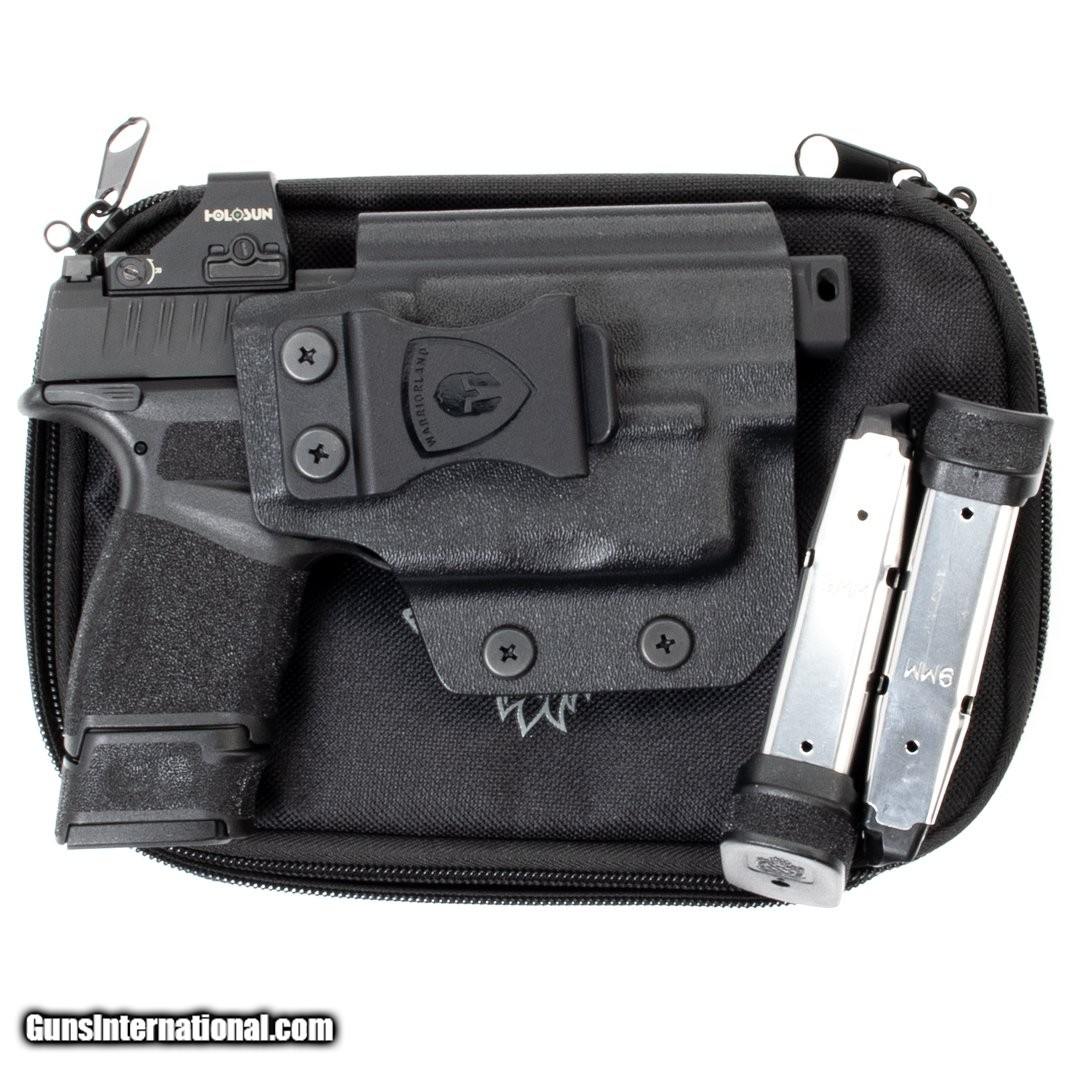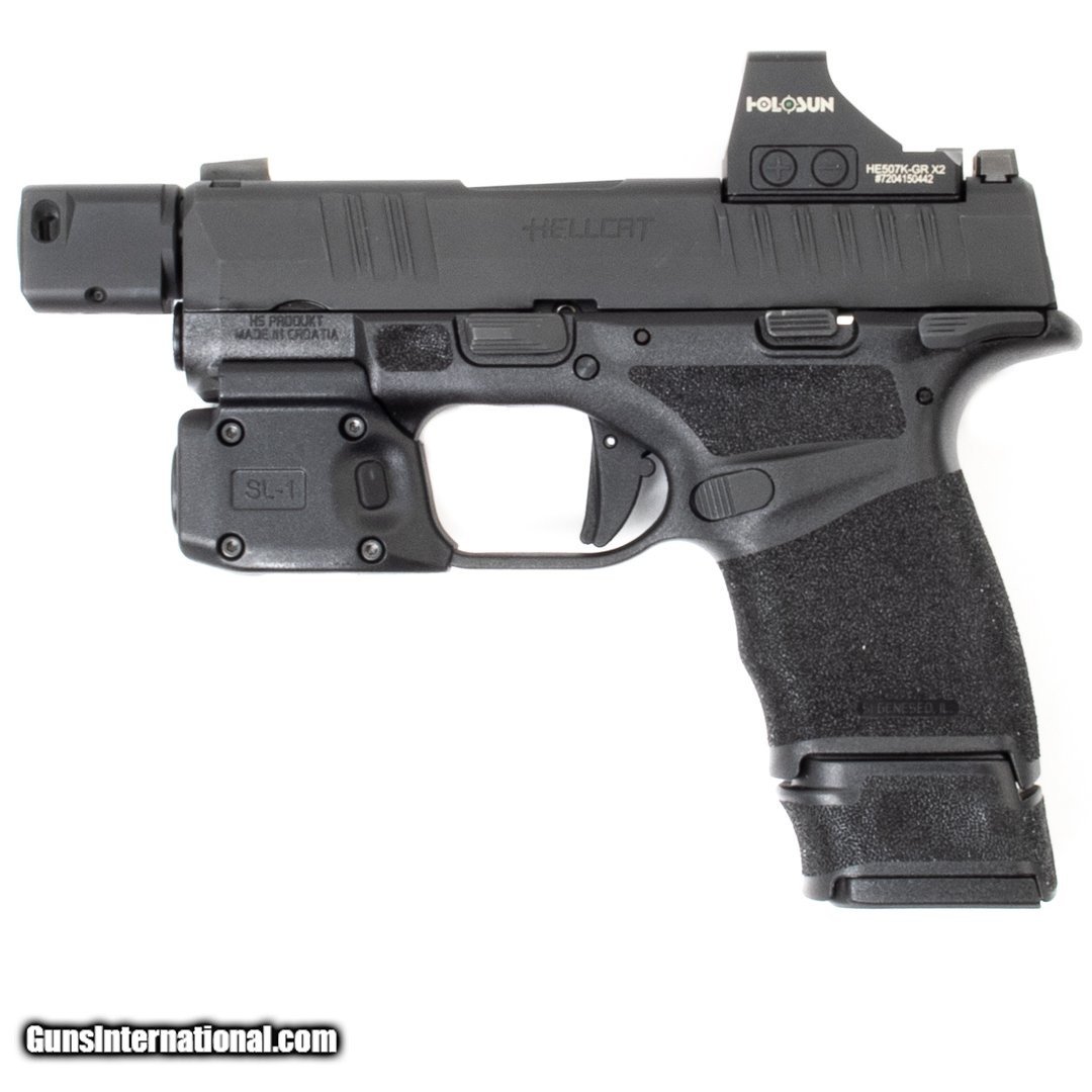 Description: Guns Listing ID: 570262 This Springfield Armory Hellcat features a Holosun 507K green dot optic, a Warrior tactical light, a compensator, and a front night sight. Purchase includes one 11-round magazine, one 13-round magazine, one 15-round magazine, the original box, an extra 3\" barrel, and a light-compatible IWB holster. Get the best bang for your buck when you get a Certified Used Firearm . When you see the Certified Used stamp on any of our firearms, you can be confident that you‚re getting exactly what you want – a gun only in very good to excellent condition and held to the highest quality standard. All Certified Used Guns come with a ‚no questions asked‚ return policy . SOLD Manufacturer: SPRINGFIELD ARMORY Model: HELLCAT Caliber Info: 9MM LUGER (9X19 PARA) Condition: Used - Certified Barrels: 3.80" BARREL Action: SEMI AUTOMATIC Finish: black Weight: 1.2 |