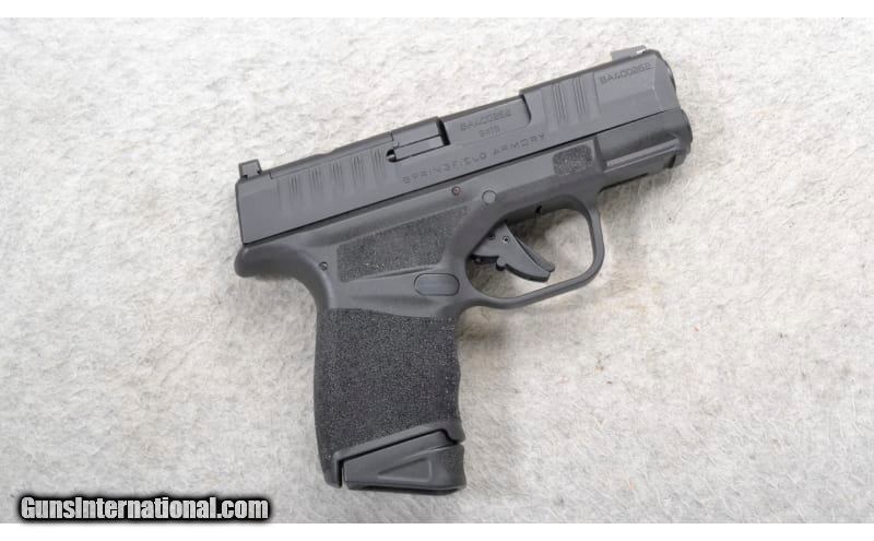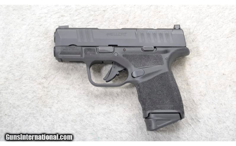 Description: This Springfield Armory Model Hellcat is a right hand semi-auto pistol in 9mm Cal. It has a 3 inch barrel with a front and rear serrated slide. A blade front sight with a luminous sight dot and a U notch rear sight with a white outline. The grip is a textured black polymer. It has a lower accessory rail. 9mm Parabellum SOLD Chambers: 11 round magazine. Metal Condition: Excellent. Bore Condition: Excellent. Barrels: 3 inch barrel with a front and rear serrated slide. Weight: 18 oz. Sights: Blade front with a luminous sight dot. U notch rear with a white outline. Item Location: Richfield, WI |