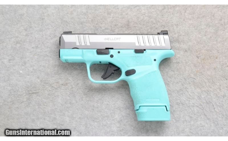 Description: This Springfield Armory Model Hellcat is a right hand semi-auto pistol in 9mm Cal. It has a 3 inch barrel with a front and rear serrated stainless steel slide. A blade front sight with an enhanced luminous sight dot. A U notch rear sight with a white outline. The grip is a textured aqua polymer. It has a lower accessory rail. 9mm Parabellum SOLD Chambers: 13 round. Metal Condition: Excellent. Bore Condition: Excellent. Barrels: 2 inch barrel with a front and rear serrated slide. Weight: 18 oz. Sights: Blade front with an enhanced luminous sight dot. U notch rear with a white outline. Item Location: Richfield, WI |