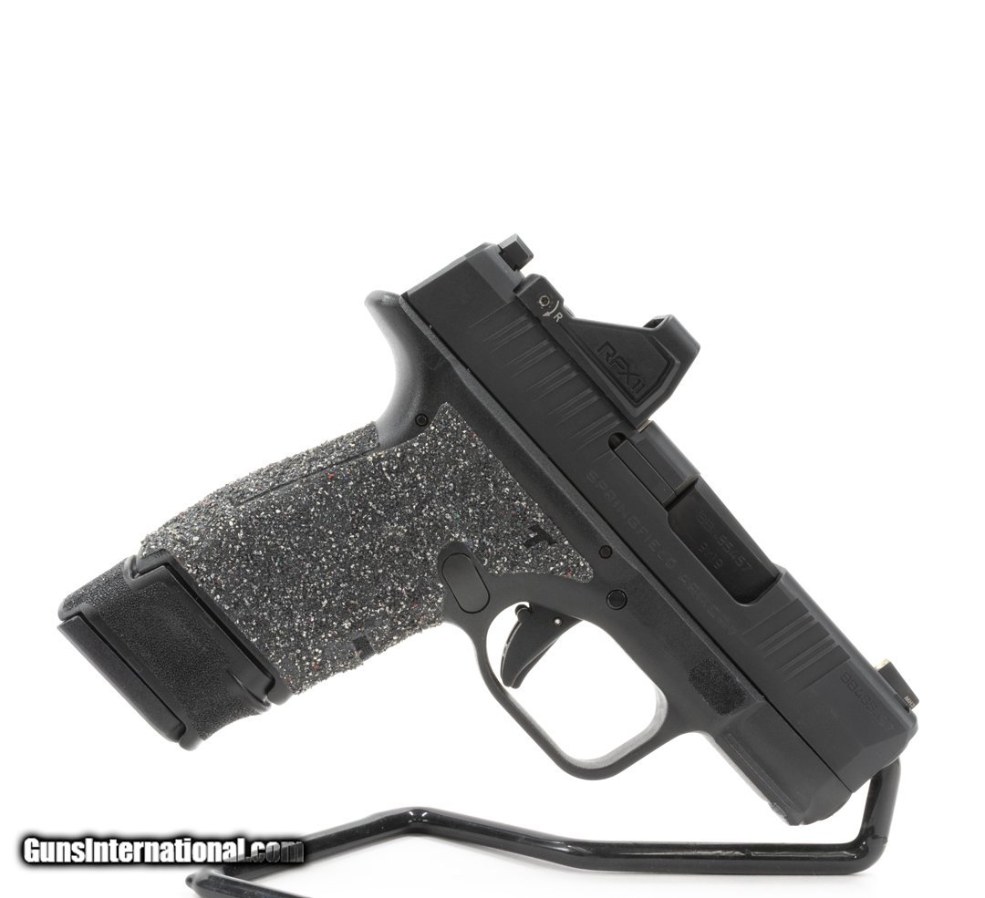 Description: Guns Listing ID: 496075 Manufacturer: Springfield Armory Model: Hellcat OSP Condition: Very good Caliber: 9x19mm Action: Semi-Auto / Striker Fired Barrel Length: 3” Overall Length: 6” Capacity: 15 or 13 Optic: Virdian RFX11 Reflex Sight, green dot, shake to wake, 3 MOA, IPX4, takes CR2032 (Battery included) Features: Subcompact pistol, aggressive grip texture, optic ready slide, accessory rail, Tritium U-Dot co-witness with optic. Inventory: Firearm, mounted optic with manual, optic plate cover, (2) 15-rd & (2) 13-rd magazines, Springfield monogramed black soft carry case, Cytac OWB black polymer holster. • Please be aware that we have not test fired this gun. Unless otherwise stated, expect this firearm to fire and function safely. SOLD Manufacturer: SPRINGFIELD ARMORY Model: HELLCAT OSP Caliber Info: 9MM LUGER (9x19 PARA) Condition: Used - Non-Certified Barrels: 3 BARREL Action: SEMI AUTOMATIC Finish: black |