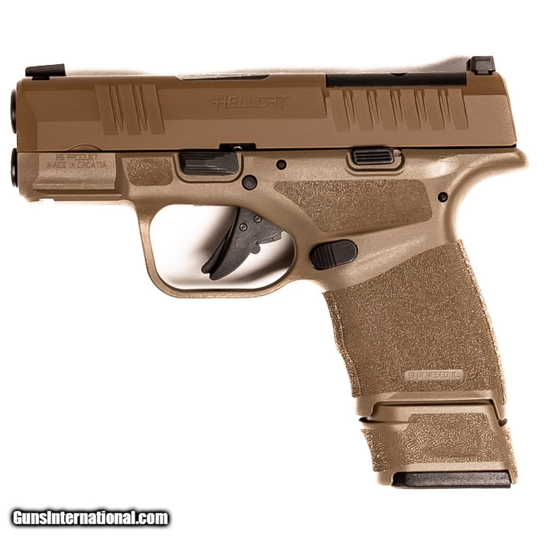 Description: Guns Listing ID: 776150 The Springfield Armory Hellcat is referred to as the world’s highest capacity micro-compact. It makes an excellent handgun for concealed carry and home defense thanks to its superior handling characteristics. This is an OSP model (Optical Sight Pistol) which means the slide is ready for a micro red dot sight. 2-15 round magazines, 2-13 round magazines, the original box, soft case, and a manual are included. Equipped with night sights. The Springfield Armory® Hellcat® raises the bar on concealed carry pistols with service pistol comfort, capacity and accuracy in a remarkably compact chassis. Offering up to an amazing 13+1 rounds on tap, the Hellcat Micro-Compact OSP™ (Optical Sight Pistol) has its billet-machined rear slide deck cut to accept a micro red dot sight. Premium features like a 3” hammer-forged Melonite®-coated 1:10”-twist barrel and svelte 1” grip width define the Hellcat® line. Get the best bang for your buck when you get a Certified Used Firearm . When you see the Certified Used stamp on any of our firearms, you can be confident that you’re getting exactly what you want – a gun only in very good to excellent condition and held to the highest quality standard. All Certified Used Guns come with a ‘no questions asked’ return policy . PLUS, ALL CERTIFIED USED GUNS SHIP FREE! SOLD Manufacturer: SPRINGFIELD ARMORY Model: HELLCAT OSP Caliber Info: 9MM LUGER (9X19 PARA) Condition: Used - Certified Barrels: 3.3 BARREL Finish: FDE |