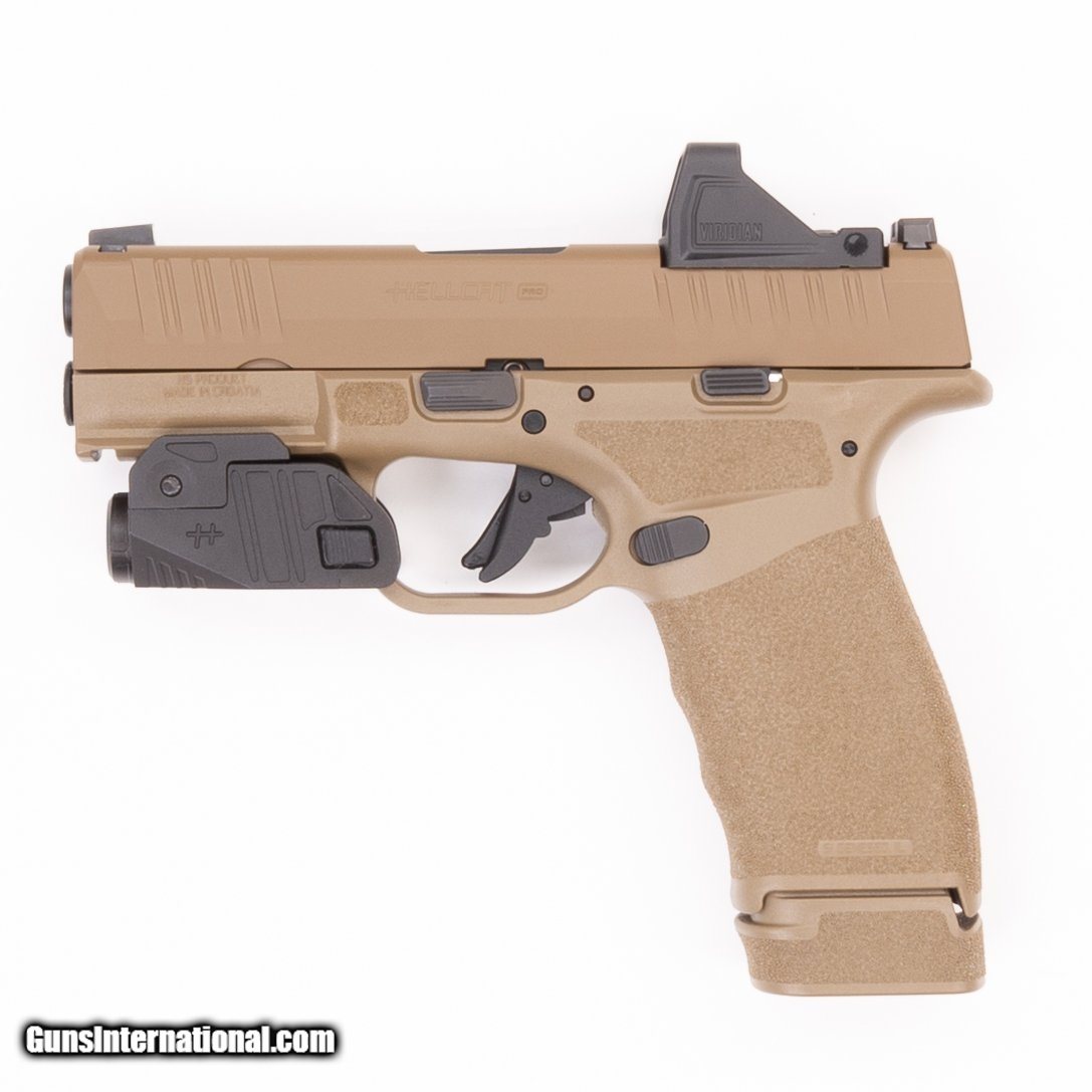 Description: Guns Listing ID: 471077 This Springfield Armory Hellcat Pro features an optic-ready slide, U-notch rear with front night sight, a Viridian RFX11 green dot optic, and a Viridian CTL Hellcat Pro Edition rechargeable tactical flashlight. Purchase includes the original box, a Springfield Armory range bag, one 15-round magazine, eight 17-round magazines, and a loader. Get the best bang for your buck when you get a Certified Used Firearm . When you see the Certified Used stamp on any of our firearms, you can be confident that you‚‚re getting exactly what you want – a gun only in very good to excellent condition and held to the highest quality standard. All Certified Used Guns come with a ‚‚no questions asked‚‚ return policy . PLUS, ALL CERTIFIED USED GUNS SHIP FR SOLD Manufacturer: SPRINGFIELD ARMORY Model: HELLCAT PRO Caliber Info: 9MM LUGER (9x19 PARA) Condition: Used - Certified Barrels: 3.60 Action: SEMI AUTOMATIC Finish: FDE Weight: 1.2 |