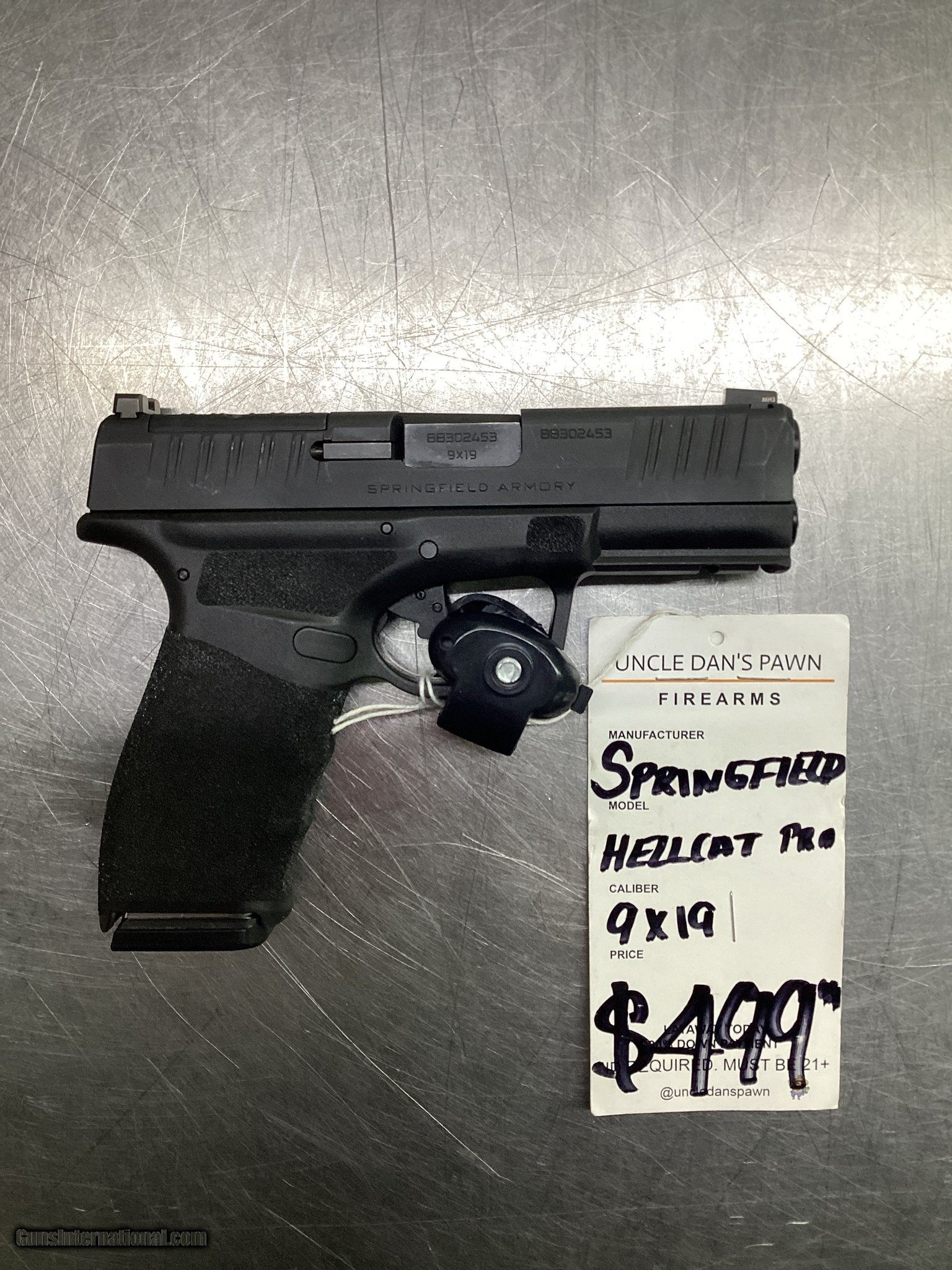 Description: Guns Listing ID: 606905 Springfield Hellcat pro 9x19 Manufacturer: SPRINGFIELD ARMORY Model: HELLCAT PRO Caliber Info: 9MM LUGER (9x19 PARA) Condition: Used - Non-Certified Barrels: 4" BARREL Action: SEMI AUTOMATIC Finish: black Price: $499.99 Contact Seller |