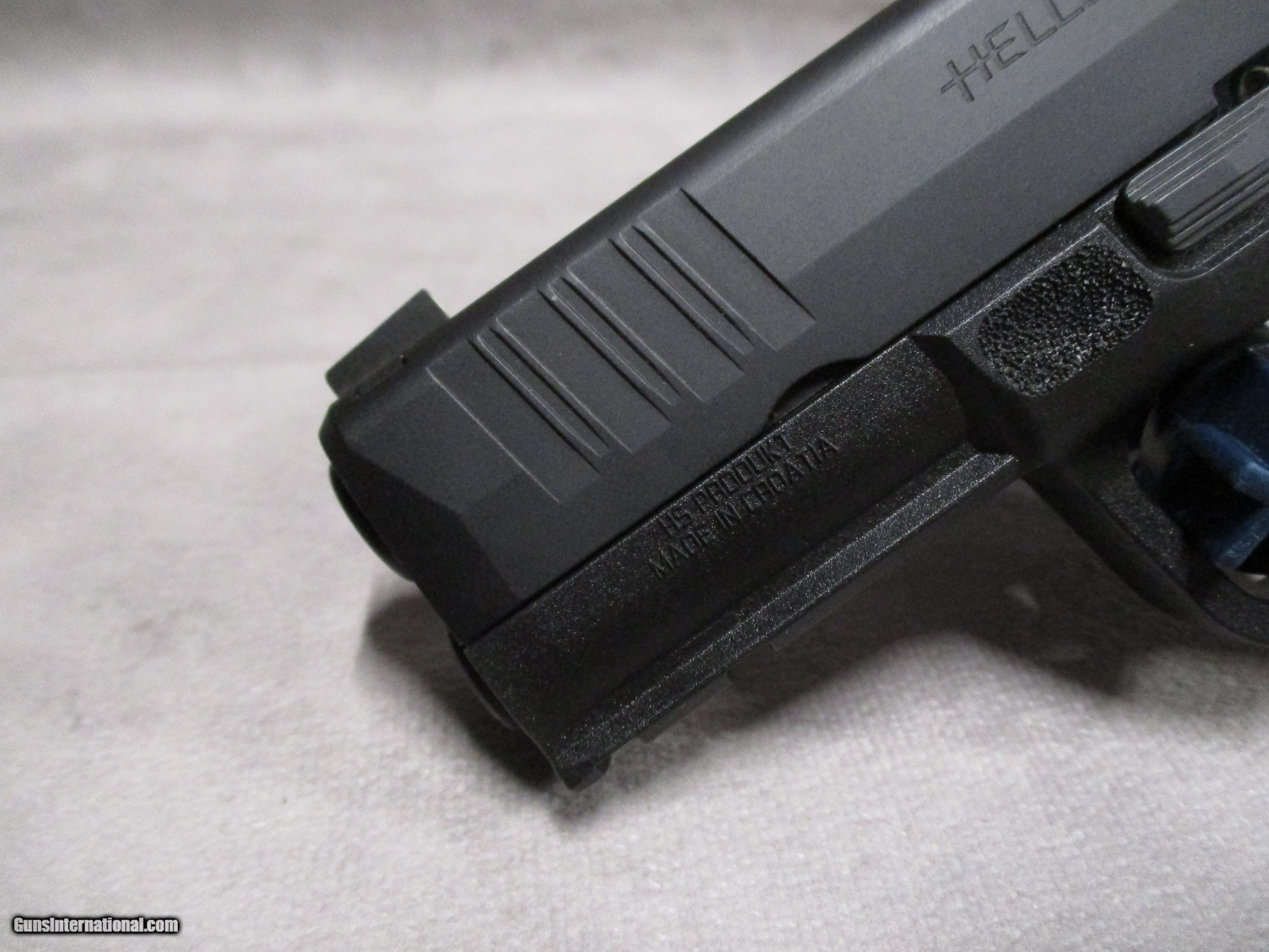 Description: The Springfield Hellcat is one of the world leaders in micro-compact pistols. The Pro version is designed to combine the magazine capacity of a larger pistol without sacrificing the fantastic level of concealability of the original Hellcat. The Hellcat Pro matches the capacity of much larger compact pistols, such as the Glock 19 and Sig Sauer P229, holding 15 rounds in the standard, flush-fit magazine. The Hellcat Pro is still easy to conceal given that it is a mere 1.0 inch in width. Overall height without an optic installed is 4.8 inches, while total length is 6.6 inches. The 3.7” barrel is hammer-forged, providing excellent strength and durability, as well as ensuring great accuracy from a small package. Like the Hellcat, the Hellcat Pro also features a reversible magazine release, a loaded chamber indicator, top slide serrations for easier racking, and an integral frame rail that is non-proprietary. The latter allows for the fitting of a multitude of different lights, lasers, or combos which suit the owner’s purpose. The slide has an optic cut for mounting a micro red dot sight. Standard sights consist of a Tactical Rack U-dot rear sight and a tritium and luminescent front sight. These are designed to make sighting in on the target a breeze in all light conditions. The Hellcat Pro uses an adaptive grip texture on the frame designed to lock onto the human hand when the pistol is used. The texture is pressure activated. The texture consists of staggard pyramid shapes. The taller pyramids are flat on the top to ensure minimal wear on clothing while the pistol is being carried concealed. The shorter pyramids come to a point and lock into the hand when the pistol is gripped during shooting. The pistol shown is brand new in the box. It comes with two 15-round magazines. There is also a magazine loading tool. Finally, there is a small soft case for the pistol. SOLD Handgun Caliber: 9x19mm Parabellum (9mm Luger, 9x19mm NATO) Manufacturer: Springfield Armory Model: Hellcat Pro Serial Number: BB500047 Bore: Polygonal rifling, 6 grooves, 1:10 inches (1 in 254 mm) twist Ejectors: Auto-ejection Condition: New in Box Barrels: Cold hammer-forged steel Barrel Type: Tilting Action: Browning short recoil system, striker-fired double action. Triggers: Polymer, Gen 2 trigger Stock: Polymer grip frame Fore End: Polymer, picatinny rail equipped Finish: Matte black Weight: 21.0 oz. Sights: Drift adjustable, U-Dotâ„¢ rear, tritium & luminescent front, sight radius 5.5 inches (140 mm) Case: Springfield Armory Box and soft case |