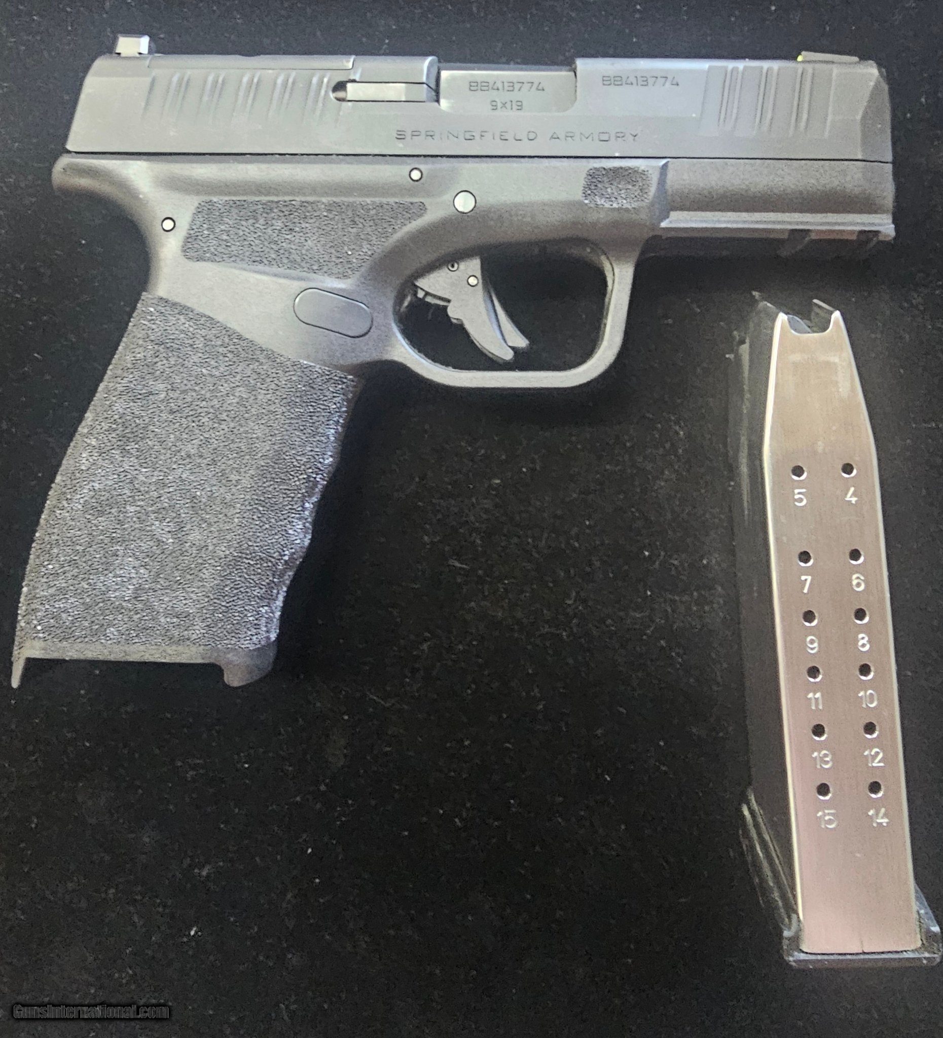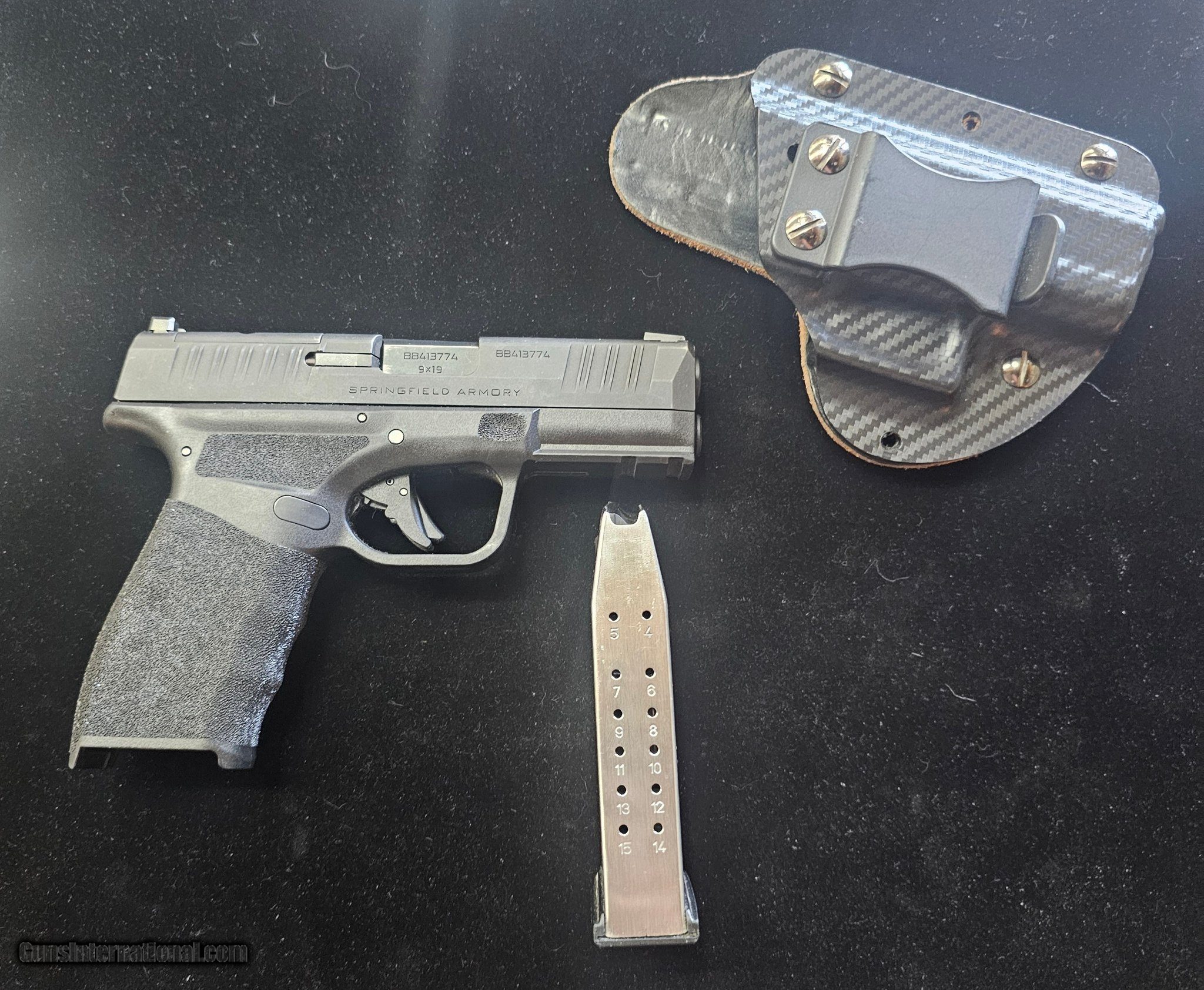 Description: Guns Listing ID: 521124 The Springfield Armory Hellcat® Pro OSP™ 9mm is a compact, optics-ready handgun designed for concealed carry, offering a balance between size and performance. It features a 3.7\" hammer-forged steel barrel with a Melonite® finish, a billet-machined slide also with a Melonite® finish, and a black polymer frame with Adaptive Grip Texture. The pistol measures 6.6\" in length, 4.8\" in height, and 1\" in width, weighing 21 oz. It comes equipped with tritium/luminescent front sights and a tactical rack U-notch rear sight, and includes a dual captive recoil spring with a full-length guide rod. The Hellcat Pro OSP™ is chambered in 9mm and offers a 15+1 capacity, with a flush-fitting 15-round magazine included . This also comes with a no name hard plastic and leather backing holster SOLD Manufacturer: SPRINGFIELD ARMORY Model: HELLCAT PRO OSP Caliber Info: 9MM LUGER (9x19 PARA) Condition: Used - Non-Certified Barrels: 3.6 Action: SEMI AUTOMATIC Finish: black |