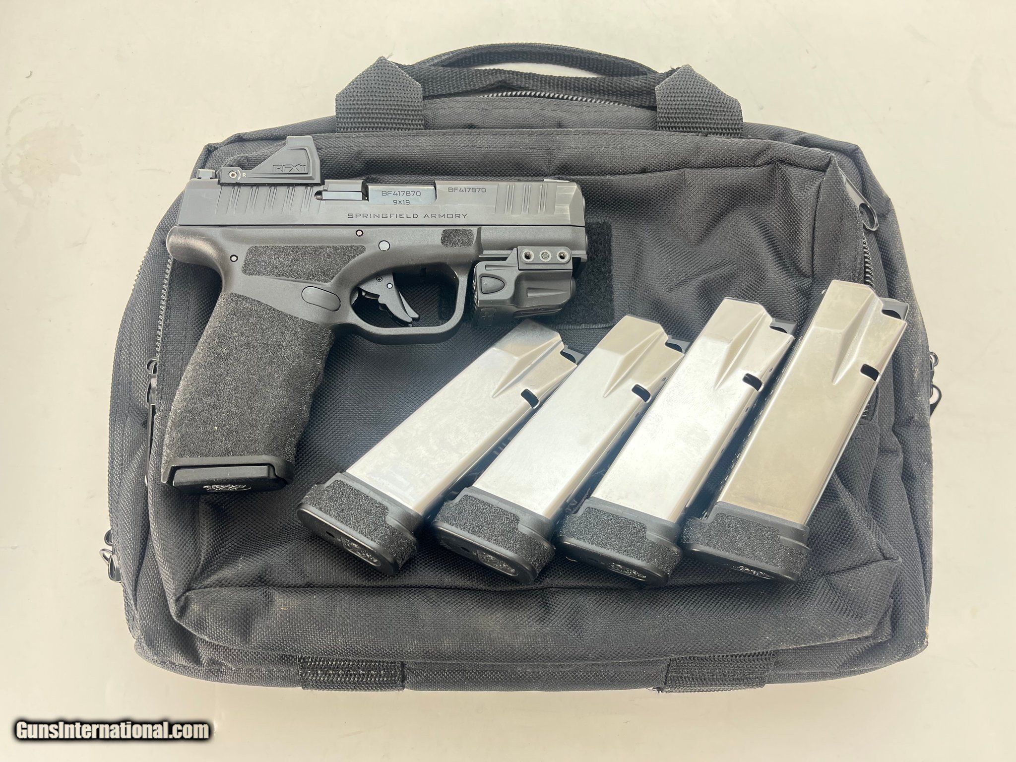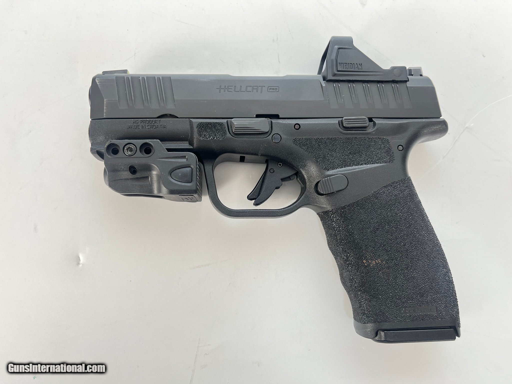 Description: Guns Listing ID: 605860 The Springfield Armory Hellcat Pro Gear Up Package in 9mm offers a compact, high-capacity pistol platform enhanced with valuable factory accessories. This pistol is used and in good condition, showing normal wear consistent with responsible use, while remaining fully functional and well maintained. It’s an excellent option for shooters looking for a proven defensive handgun with added features at a great value. The Hellcat Pro is known for its slim profile, excellent ergonomics, and impressive capacity for its size. This Gear Up Package includes one 15-round magazine and four 17-round magazines, giving you flexibility for carry, training, or range use. The pistol is equipped with a Viridian green dot sight, allowing for fast target acquisition and improved accuracy, especially in dynamic or defensive scenarios. Complementing the optic are co-witness night sights, ensuring a reliable sight picture even in low-light conditions. Mounted on the accessory rail is an underbarrel green laser, adding another layer of aiming capability and versatility. The textured grip and extended frame of the Hellcat Pro provide excellent control and comfort, making it easy to shoot accurately despite its compact footprint. This package also includes a Springfield Armory range bag, perfect for transporting the pistol, magazines, and accessories while keeping everything organized. Overall, this Hellcat Pro Gear Up Package delivers outstanding performance, capacity, and added accessories in a dependable 9mm platform, making it a solid choice for concealed carry, home defense, or range use. Manufacturer: SPRINGFIELD ARMORY Model: HELLCAT PRO OSP W/ GEAR UP PKG Caliber Info: 9MM LUGER (9x19 PARA) Condition: Used - Non-Certified Barrels: 3.7" BARREL Action: SEMI AUTOMATIC Finish: black Price: $659.99 Contact Seller |