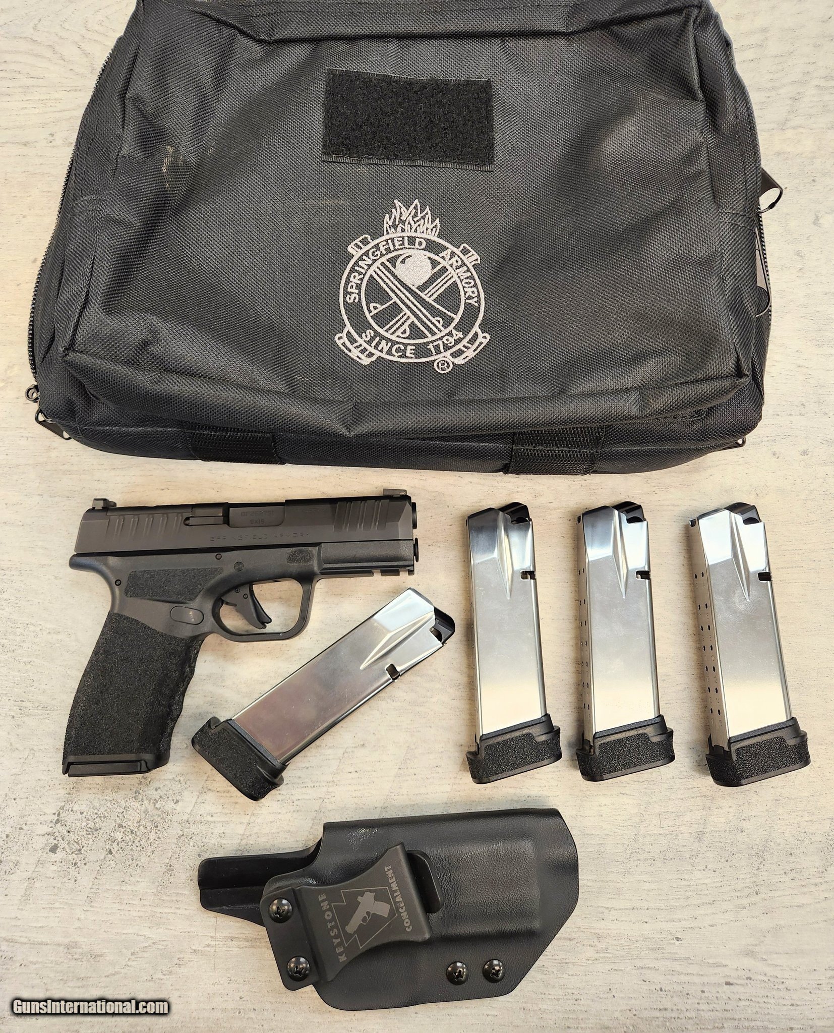 Description: Guns Listing ID: 605881 Includes pictured magazines and soft case, with factory bag. No other accessories included Manufacturer: SPRINGFIELD ARMORY Model: HELLCAT PRO OSP W/ GEAR UP PKG Caliber Info: 9MM LUGER (9X19 PARA) Condition: Used - Non-Certified Barrels: 3.7" BARREL Action: STRIKER FIRED Finish: BLACK Weight: 1.3 LBS. Price: $469.99 Contact Seller |