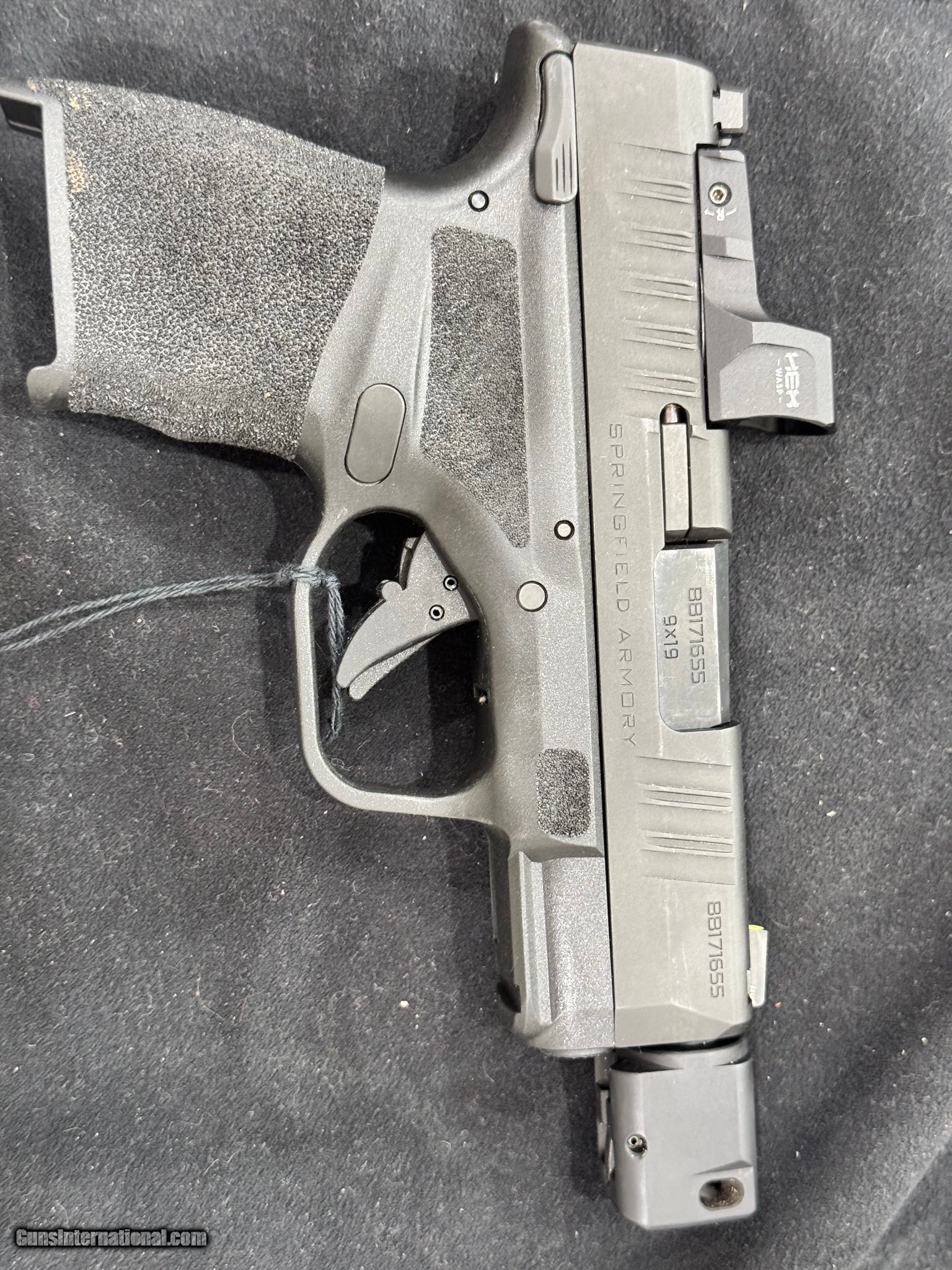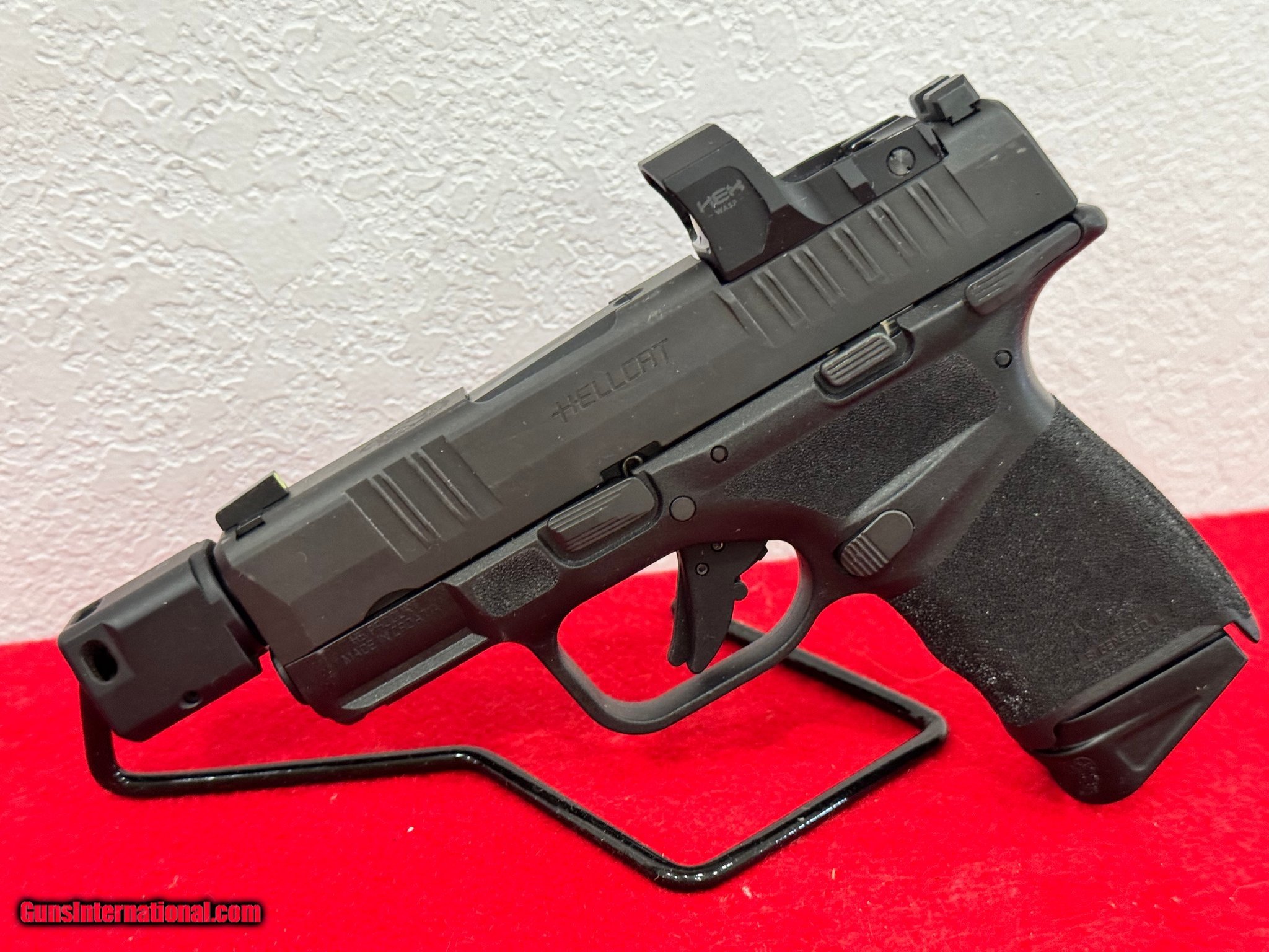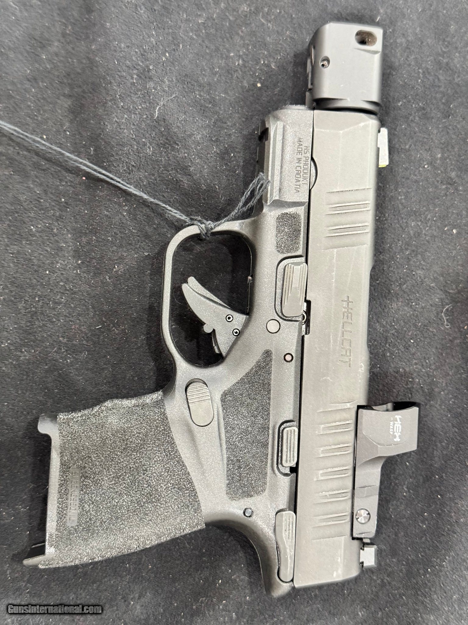 Description: Guns Listing ID: 494949 Used pistol- sold as is. Gently used and comes with all factory accessories and original box. Hex Wasp micro red dot works, as pictured. Very minimal markings or scratches. Also comes with custom kydex OTW holster. Firearm Specifications Manufacturer: Springfield Armory Model: Hellcat RDP Caliber: 9mm Luger Barrel: 3.8\" Hammer Forged Steel w/ Compensator; Threaded (.5 x 28); Melonite® Finish; 1:10 Slide: Billet Machined; Melonite Finish; Optics Ready Frame: Black Polymer with Adaptive Grip Texture; Ambidextrous Thumb Safety Sights: Tritium/Luminescent Front; Tactical Rac U-Notch Rear; HEX Wasp Red Dot Recoil System: Dual Captive Recoil Spring with Full Length Guide Rod Grip Width: 1\" Magazines: (1) 11-Round & (1) 13-Round Extended Weight: 19.3 oz w/ Flush Mag; 19.6 oz w/ Extended Mag Overall Length; 7\" Height: 4\" w/ Flush Mag; 4.5\"w/ Extended Mag SOLD Manufacturer: SPRINGFIELD ARMORY Model: HELLCAT RDP (WASP) Caliber Info: 9MM LUGER (9X19 PARA) Condition: Used - Non-Certified Barrels: 3.8 BARREL Action: STRIKER Finish: BLACK Weight: 1.21 lbs. |