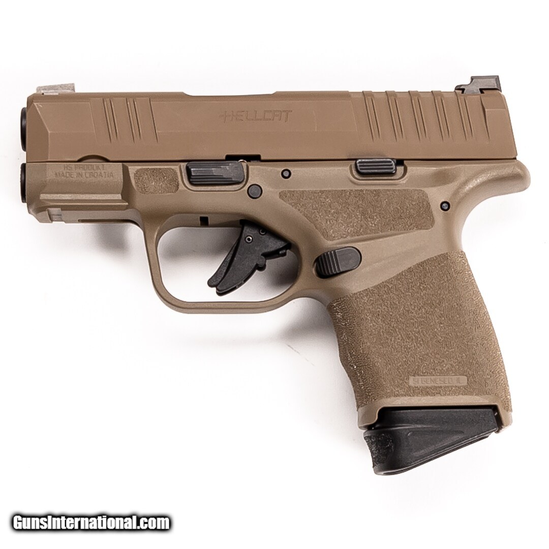 Description: Guns Listing ID: 307023 The Springfield Armory Hellcat is referred to as the world‚‚s highest capacity micro-compact. It makes an excellent handgun for concealed carry and home defense thanks to its superior handling characteristics and er magazine capacity. The Springfield Armory Hellcat has won several prestigious awards including the 2020 handgun of the year award. 1-11rd magazine, 1-13rd magazine, the original case/box and a manual are included SOLD Manufacturer: SPRINGFIELD ARMORY Model: HELLCAT Caliber Info: 9MM LUGER (9X19 PARA) Condition: Used - Certified Barrels: 3 BARREL Finish: FDE |