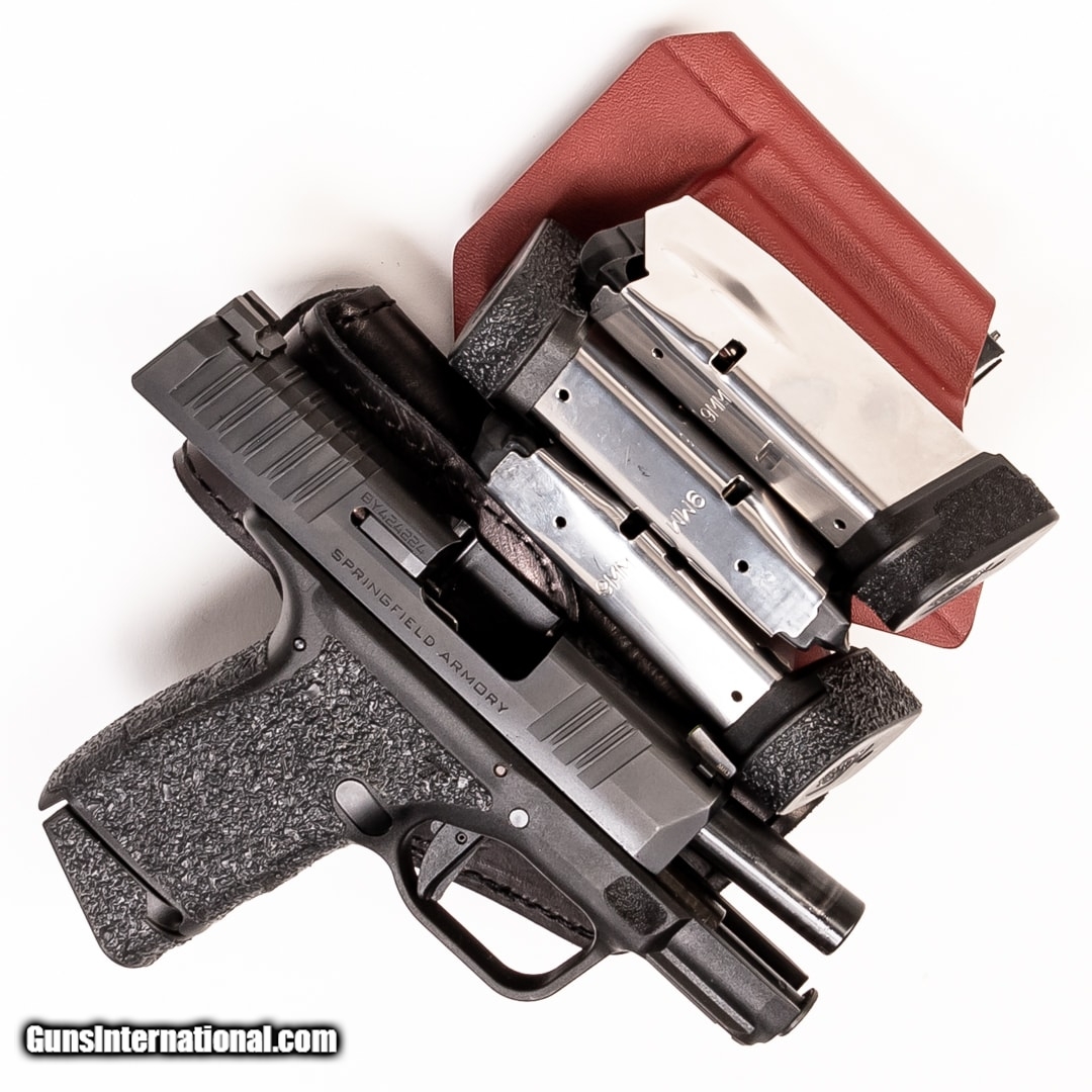 Description: Guns Listing ID: 416596 The Springfield Armory Hellcat is referred to as the world‚‚s highest capacity micro-compact. This award-winning handgun is chambered in 9mm. Thanks to its superior handling characteristics, it makes a fantastic weapon for concealed carry and home defense. This Hellcat has a Talon rubber grip wrap. Purchase includes the original case, manual, one 11-round magazine, three 13-round magazines, two Hyve Tech +3 base plate extensions, a right-handed Tier 1 concealed holster with Ulti clips and basic belt clips, and a right-handed JM4 Tactical magnetic Quick, Clip & Carry holster SOLD Manufacturer: SPRINGFIELD ARMORY Model: HELLCAT Caliber Info: 9MM LUGER (9X19 PARA) Condition: Used - Certified Barrels: 3 BARREL Finish: BLACK |