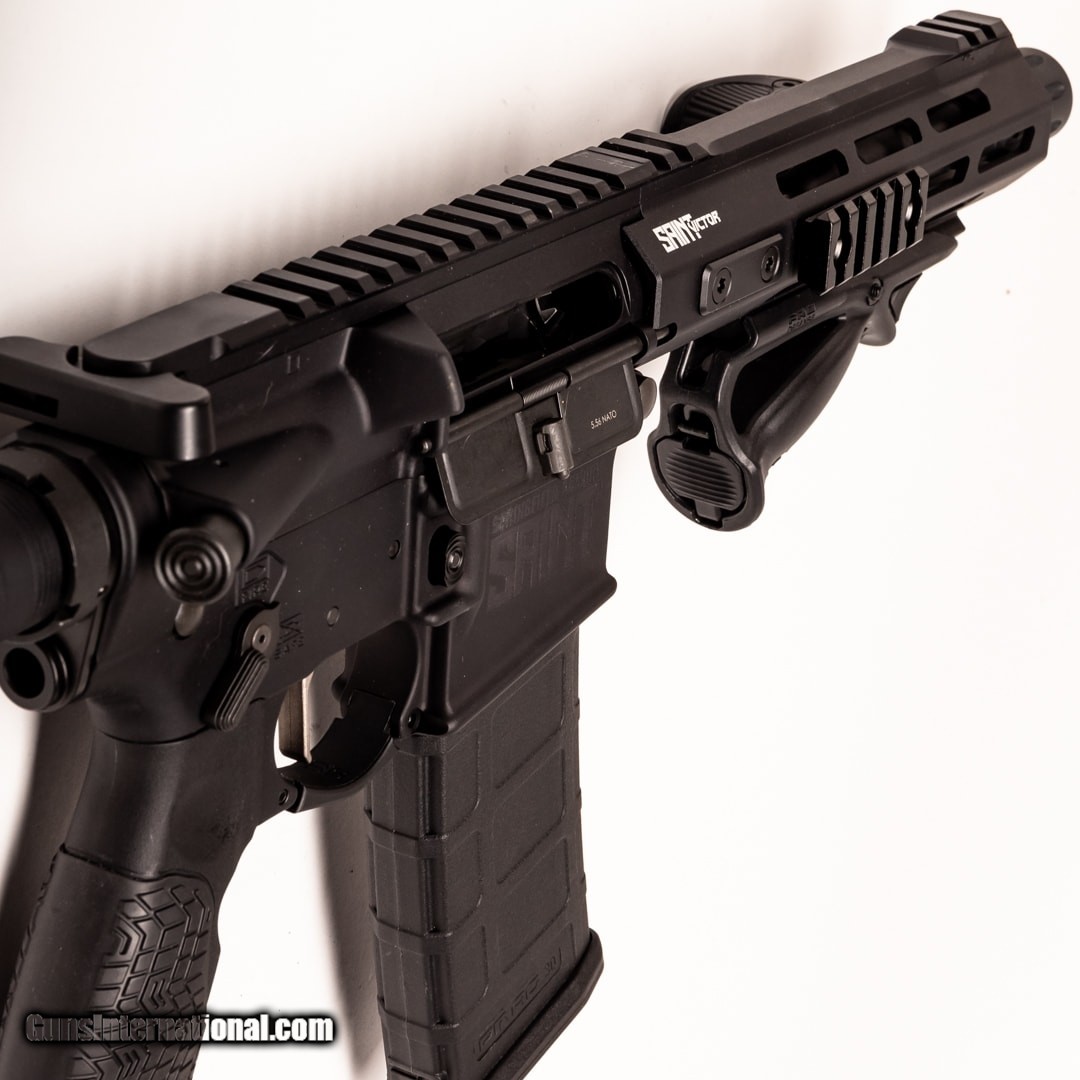 Description: Guns Listing ID: 849705 Powerful, potent and capable, the SAINT Pistol series combines all the benefits of an AR with the portability of a pistol. The SAINT Pistol is designed to offer shooters the quality and performance they expect, but at an even more affordable introductory price point. The pistol has upgraded features throughout, ensuring it delivers exceptional value and making it an ideal firearm for home protection and personal defense. This Springfield Armory AR pistol features one 30-round magazine, a FAB defense AFG, and a Daniel Defense pistol grip. Get the best bang for your buck when you get a Certified Used Firearm . When you see the Certified Used stamp on any of our firearms, you can be confident that you’re getting exactly what you want – a gun only in very good to excellent condition and held to the highest quality standard. All Certified Used Guns come with a ‘no questions asked’ return policy . PLUS, ALL CERTIFIED USED GUNS SHIP FREE! SOLD Manufacturer: SPRINGFIELD ARMORY Model: SAINT Caliber Info: 5.56X45MM NATO Condition: Used - Certified Barrels: 9.5" barrel Finish: BLACK |