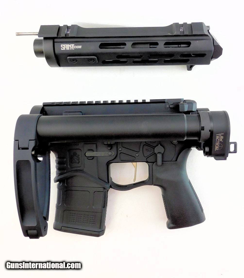 Description: Springfield Saint EDGE EVAC STEQ975556BX 5.56 NIB, 7.5" bbl with EVAC Blast Diverter, 8" handguard, black finish, machined 7075 T6 billet lower receiver, Forged 7075 T6 Aluminum upper, forward assist, lower and upper are Type III Hardcoat Anodized, ambidextrous safety, enhanced BCG, aluminum forward safety stop, Reptilia CQG grip, Law Tactical Gen 3-M Folding Adapter fitted with a Gear Head Works™ Tailhook Mod 1 brace, BlackHawk Ready Bag, and one 20-round PMAG® magazine. This is a vey compact pistol! Add 3% for Credit Card Shipping $35.00 in the 48 contiguous United States SOLD |