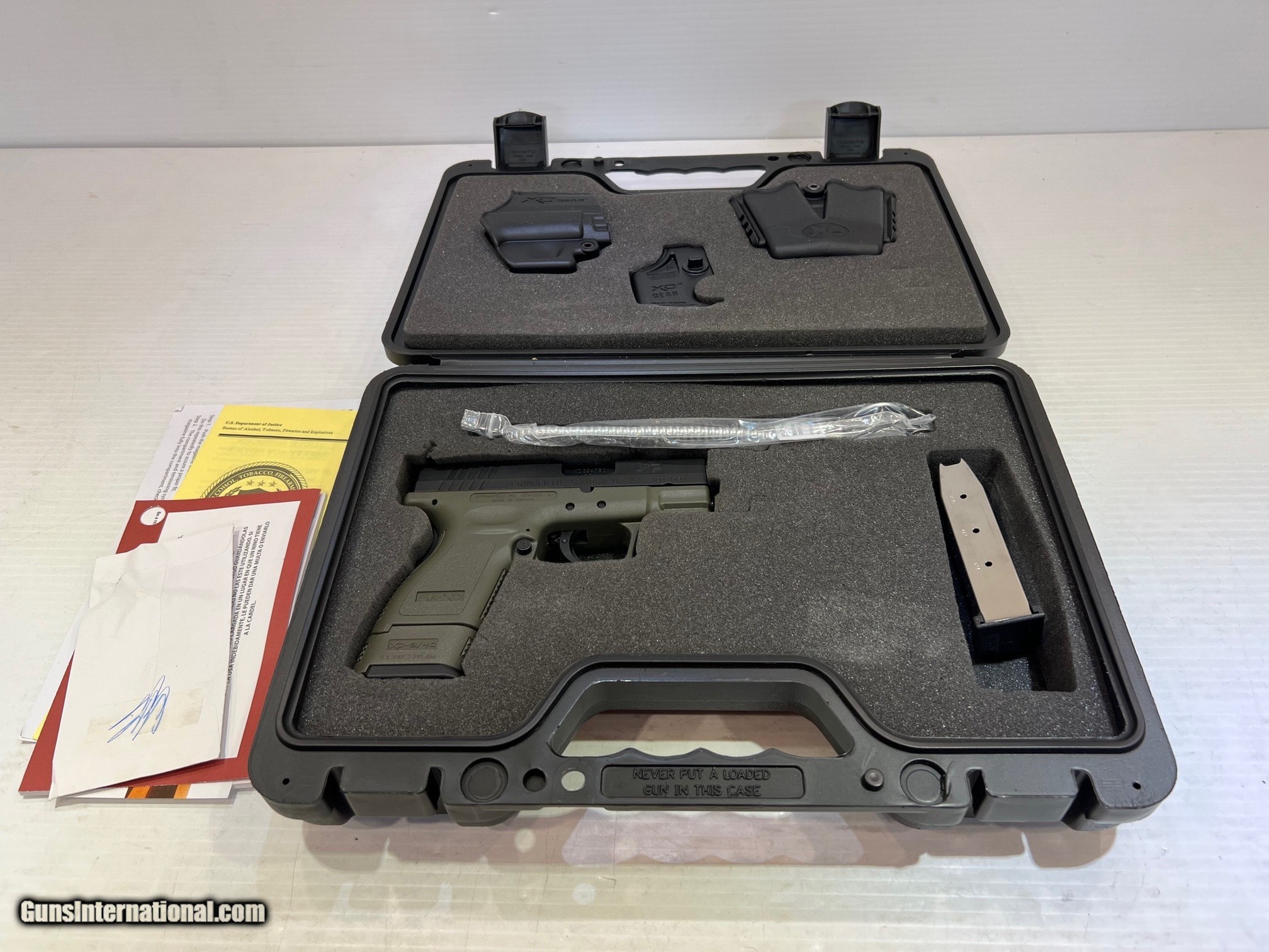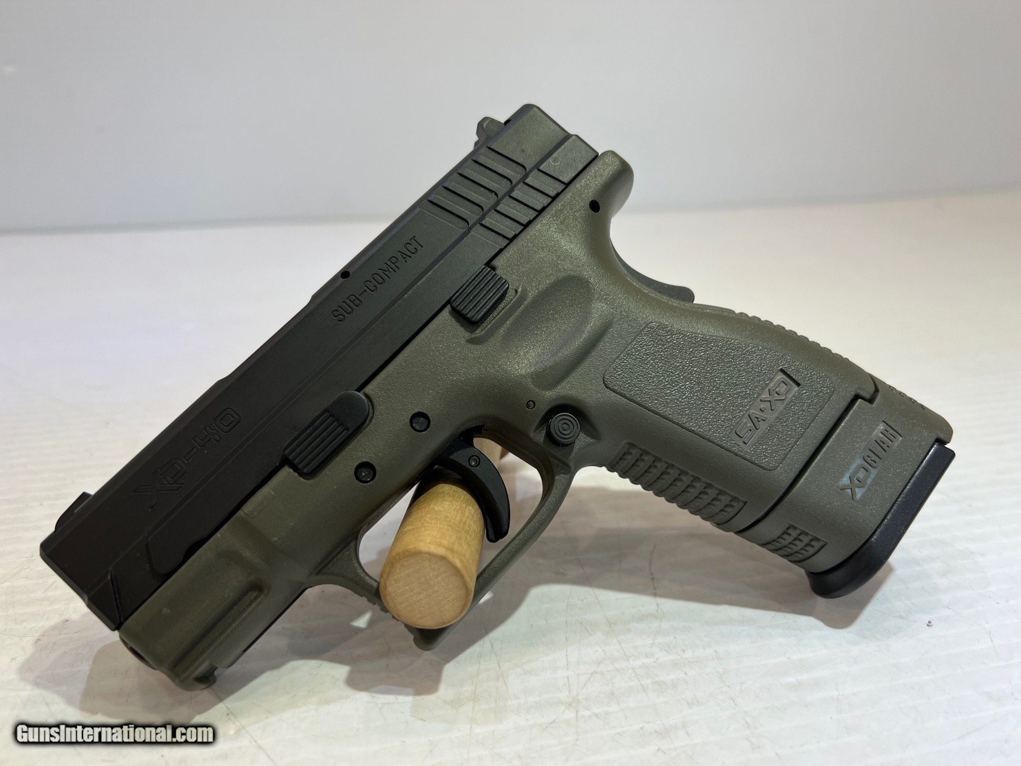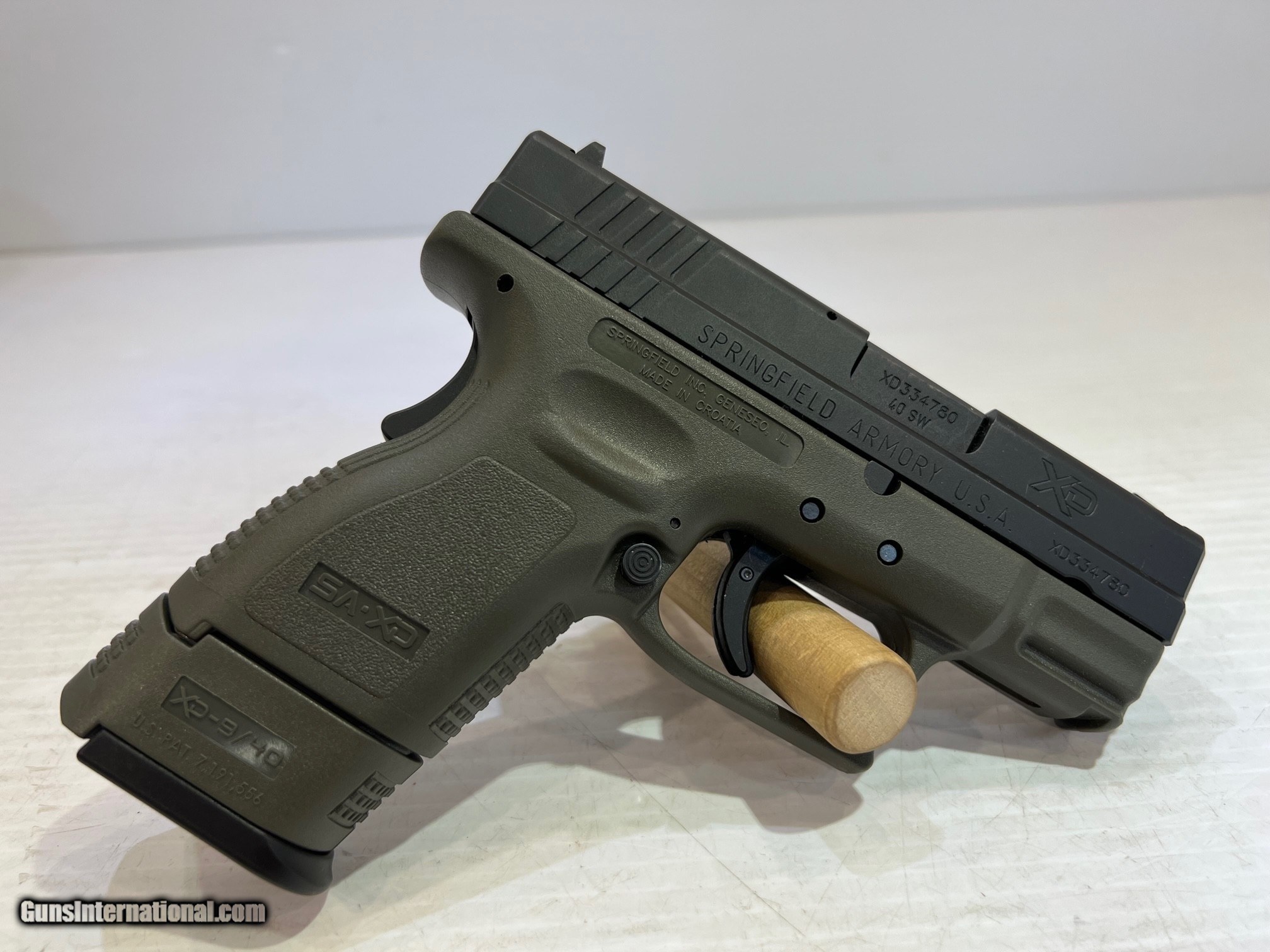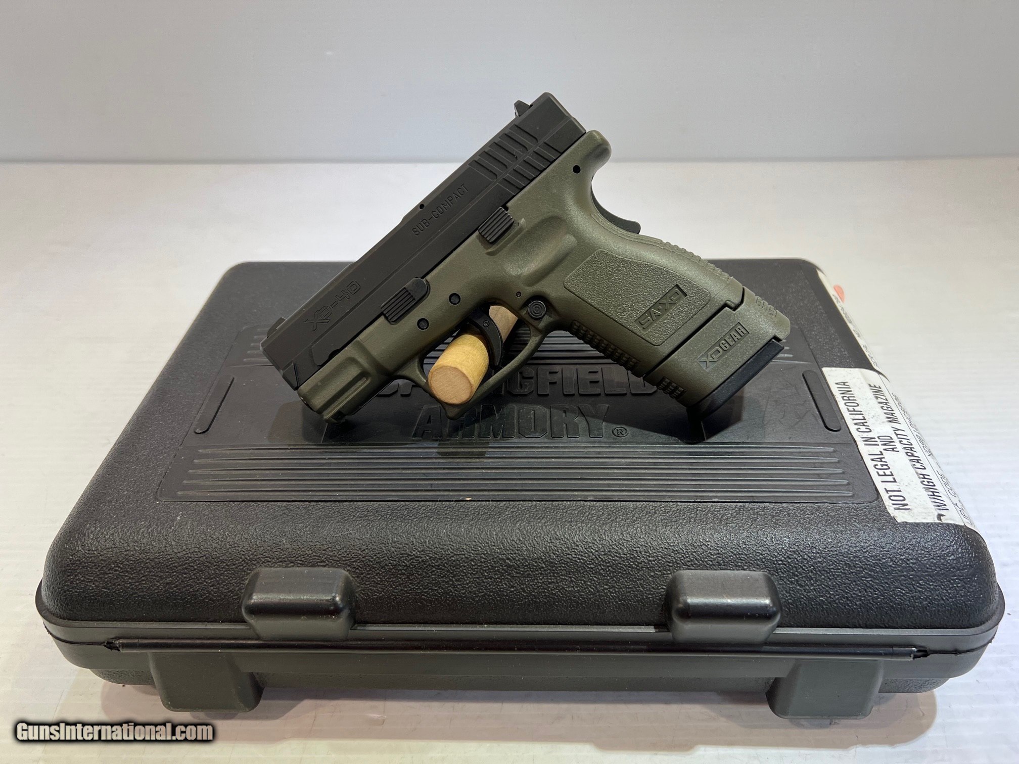 Description: New Springfield Armory XD-40 Sub-Compact .40 Smith & Wesson, Semi-Auto Pistol, 3" Barrel Olive Drab Synthetic Grips, Black Slide Finish, With Holster and Box. WE DO NOT SHIP INTERNATIONALLY $30 Shipping. Pictures are of the item listed. Must be shipped to an FFL holder. The item is on display at our shop but will be taken off the shelf once the starting is met. Please feel free to contact us directly. Three-day inspection from date items arrives at your FFL. Payment may be personal or cashier's check, money order, or credit card "3% surcharge for credit card". QUESTIONS? CALL/TEXT STEVE AT 580.327.7372 SOLD Handgun Caliber: .40 Smith & Wesson (.40 Auto, 10 x 21 mm) Serial Number: XD334780 zz18328 |
