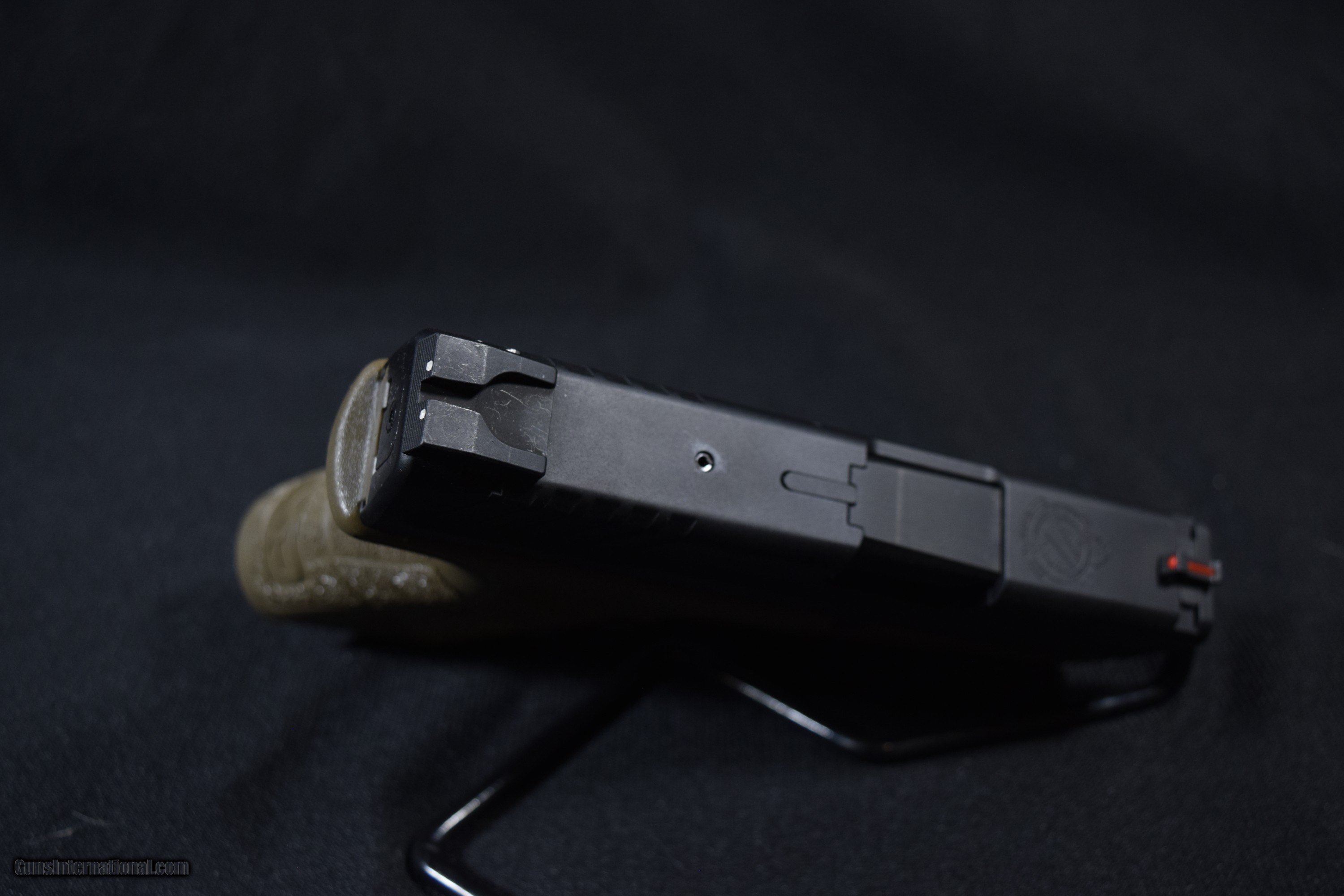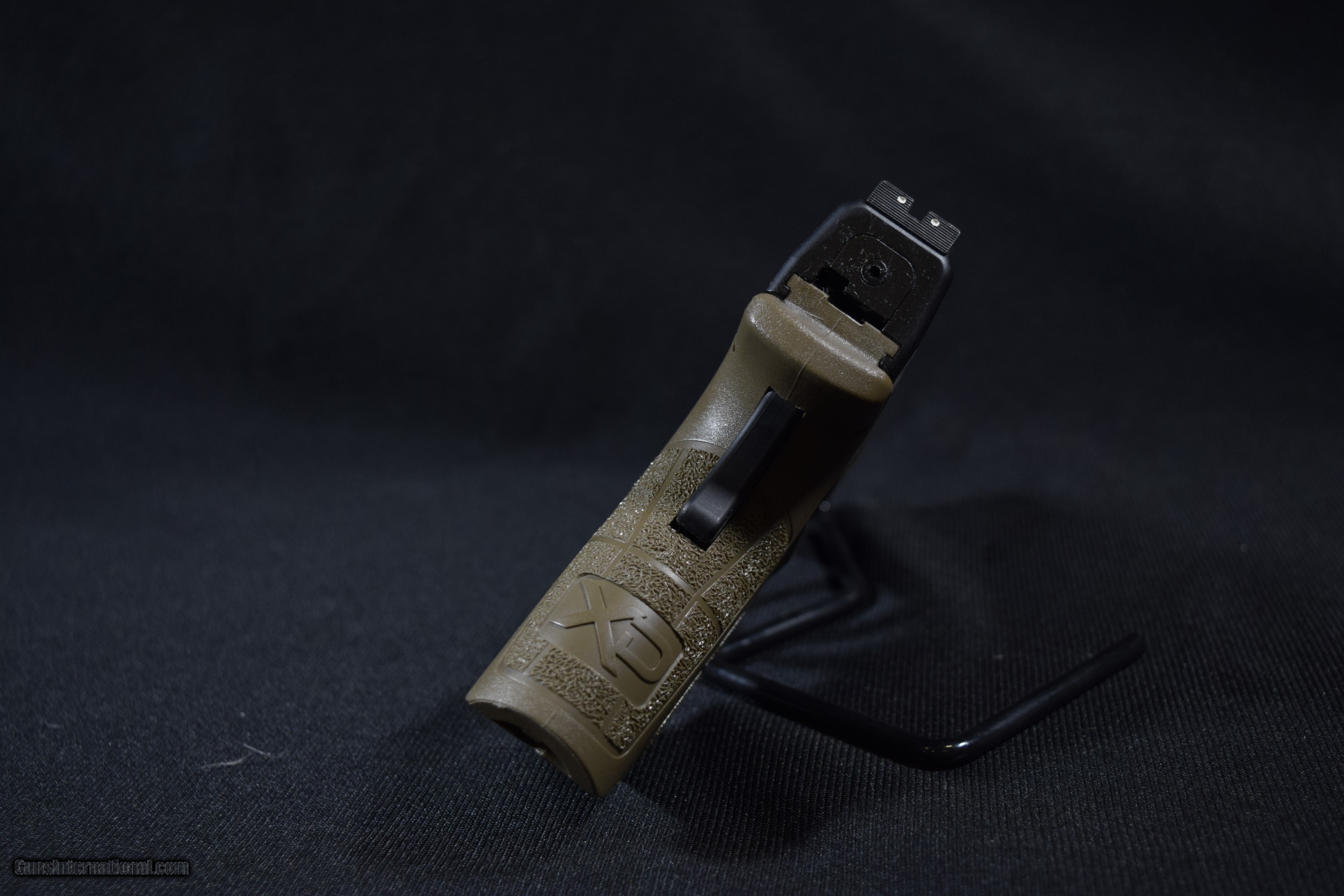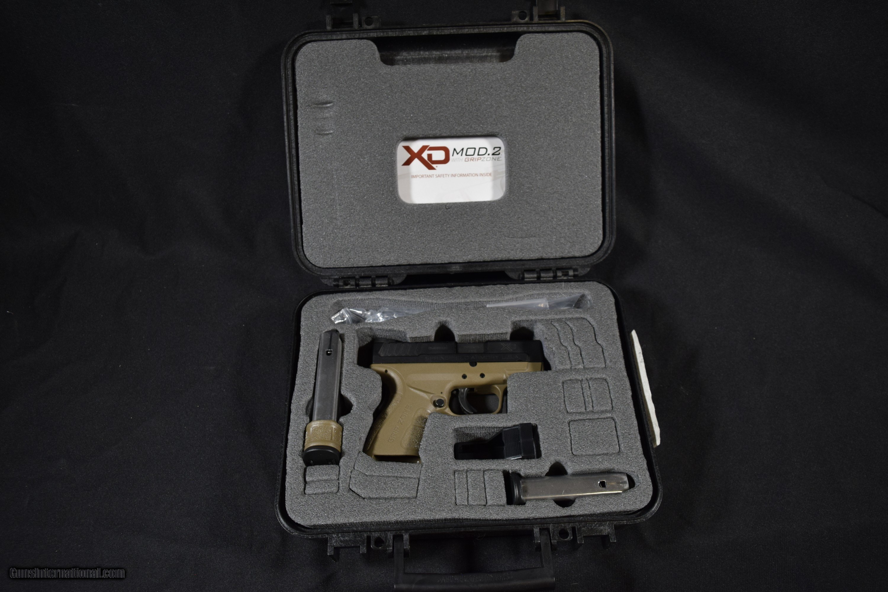 Description: The Mod.2 is the latest evolution of the XD polymer frame striker fired pistol line. It is equipped with the new GripZone that applies ergonomic science to every area you touch. The pistol also features a re-contoured, slimmer frame and slide that is only 2 tenths of an inch thicker than most single stack configurations but twice the magazine capacity. This Bi-Tone pistol has a black forged steel slide and a flat dark earth polymer frame. Like all pistols in the XD family, the pistol points naturally and comfortably. This is a great choice for a concealed carry weapon or plainclothes professional duty. This item is used and does come with the original case and 2 magazines. Overall condition is good with some wear to the item from use. Pre-Owned - Springfield XD 9 9mm 3" XDG9801FDE