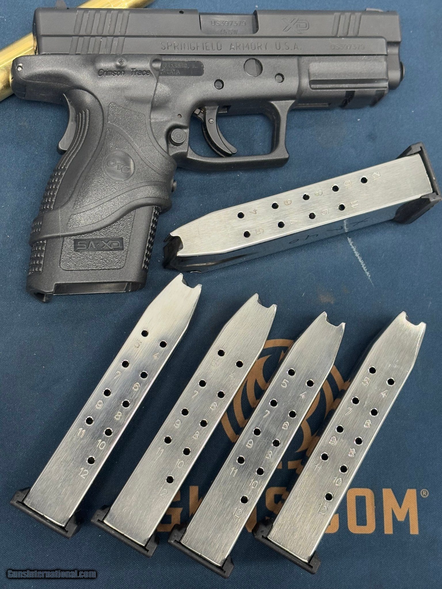 Description: Guns Listing ID: 479235 The Springfield XD-40 is a full-sized, reliable pistol chambered in .40 S&W, designed for personal defense, law enforcement use, and range shooting. Known for its rugged build and excellent ergonomics, the XD series offers outstanding performance and accuracy. This specific XD-40 includes a set of (5) 12-round magazines and an aftermarket Crimson Trace laser grip for enhanced accuracy and target acquisition. The Crimson Trace laser grip provides a clear and steady laser dot to assist in precision shooting, making this pistol even more effective in high-stress situations or low-light environments. Features: Caliber: .40 S&W Model: Springfield XD-40 Frame Size: Full-size Action: Double-Action/Single-Action (DA/SA) Magazine Capacity: Includes (5) 12-round magazines Grip: Aftermarket Crimson Trace laser grip for enhanced accuracy Sights: Fixed front and rear sights Condition: Light wear from handling, but mechanically excellent Extras: (5) 12-round magazines Aftermarket Crimson Trace laser grip for increased shooting precision Whether you‚‚re looking for a dependable firearm for concealed carry, home defense, or target practice, the Springfield XD-40 provides superior performance and reliability. The additional Crimson Trace laser grip offers quicker aiming and more accurate shots, making it an ideal choice for shooters who want more confidence in their aim SOLD Manufacturer: SPRINGFIELD ARMORY Model: XD-40 Condition: Used - Non-Certified Barrels: 3.8 Gauge Info: .40 S&W Finish: black |