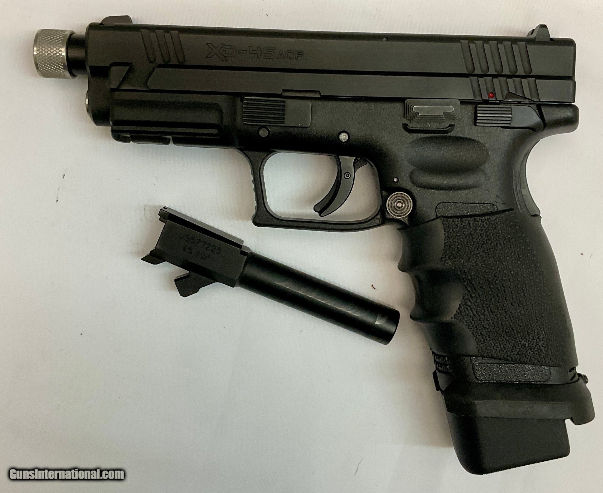 Description: Guns Listing ID: 549555 The Springfield XD-45 is a semi-automatic pistol chambered in .45 ACP, known for its polymer frame and striker-fired design. It was initially introduced as the HS2000 by HS Produkt in Croatia before Springfield Armory licensed the rights to distribute it in the US under the XD (eXtreme Duty) branding in 2002. The XD-45 gained popularity and was named \"Handgun of the Year\" by both American Rifleman and the Shooting Industry Academy of Excellence in 2006. This firearm comes with extra barrel SOLD Manufacturer: SPRINGFIELD ARMORY Model: XD 45 Caliber Info: .45 ACP Condition: Used - Non-Certified Barrels: 4.5" BARREL Action: SEMI AUTOMATIC Finish: black |